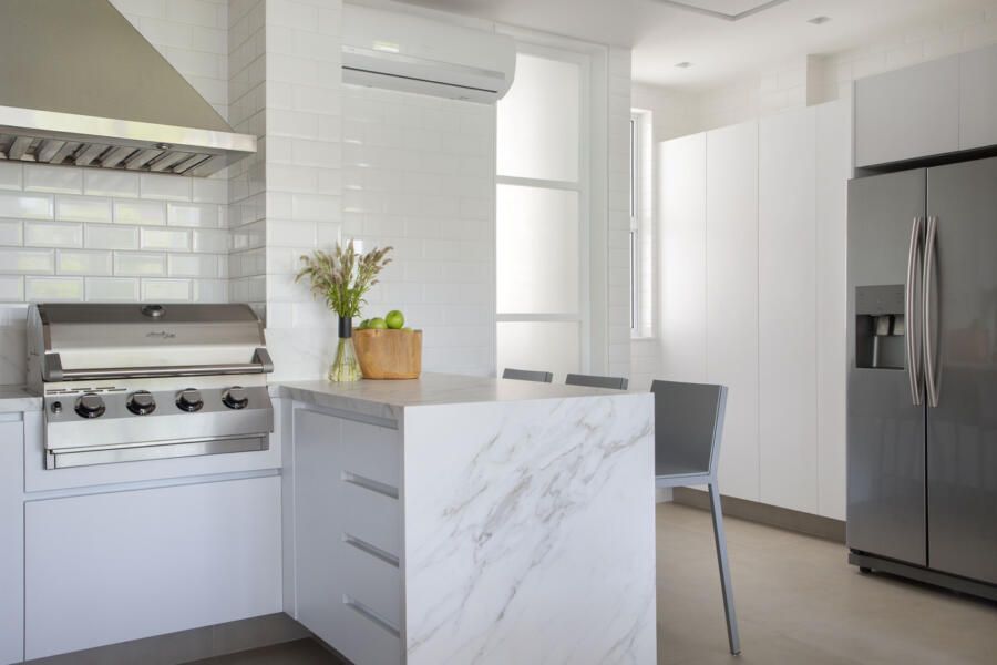 O ponto de partida do projeto veio de um desejo muito específico. Gaúchos e apaixonados por receber, os moradores queriam uma cozinha integrada à sala, com churrasqueira, capaz de funcionar tanto no dia a dia quanto em ocasiões sociais. Resolver essa equação em uma área relativamente compacta exigiu precisão técnica e sensibilidade espacial. A solução encontrada permite que a cozinha se abra completamente para a área social, mas também possa ser fechada quando necessário, preservando conforto e praticidade.
