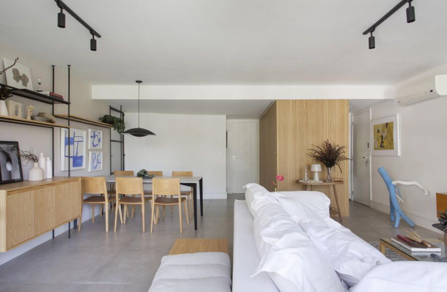 Uma área social renovada sem a necessidade de obras e com repaginação do quarto de casal. Esses foram os pedidos da apresentadora de TV Renata Pitanga à arquiteta Isabella Lucena, que assina o projeto de 160m² no Leblon, Rio de Janeiro.