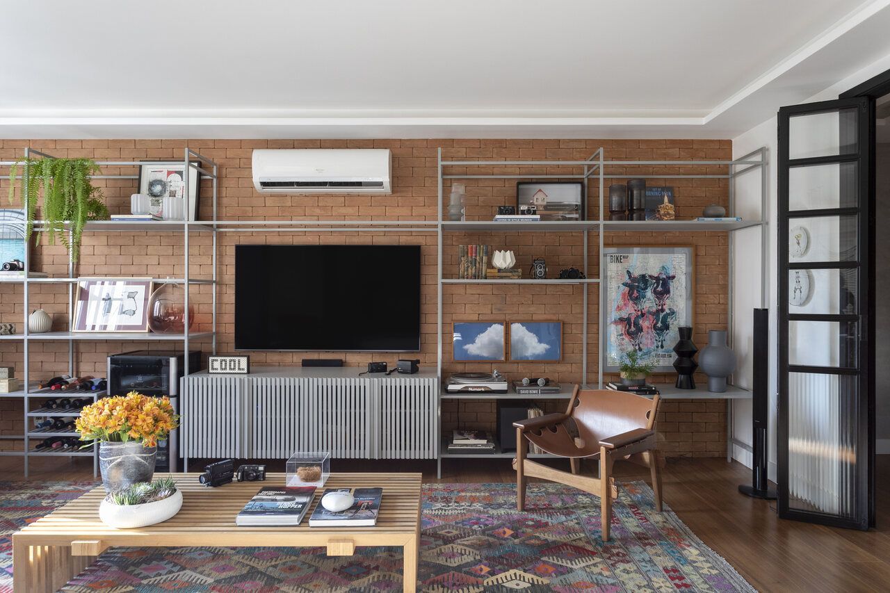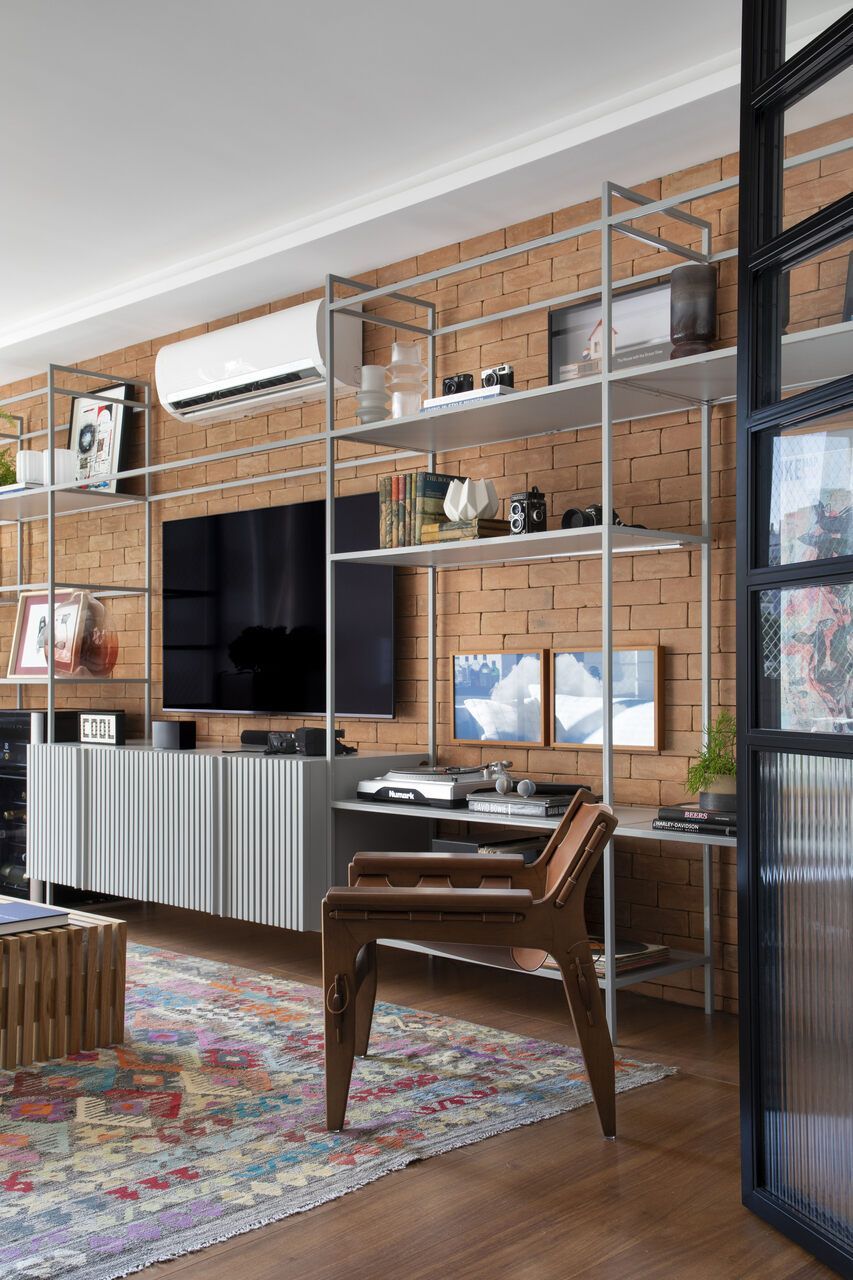 Eles queriam deixar o espaço convidativo para receber os amigos e que a decoração tivesse uma pegada mais urbana, levemente rústica e industrial.