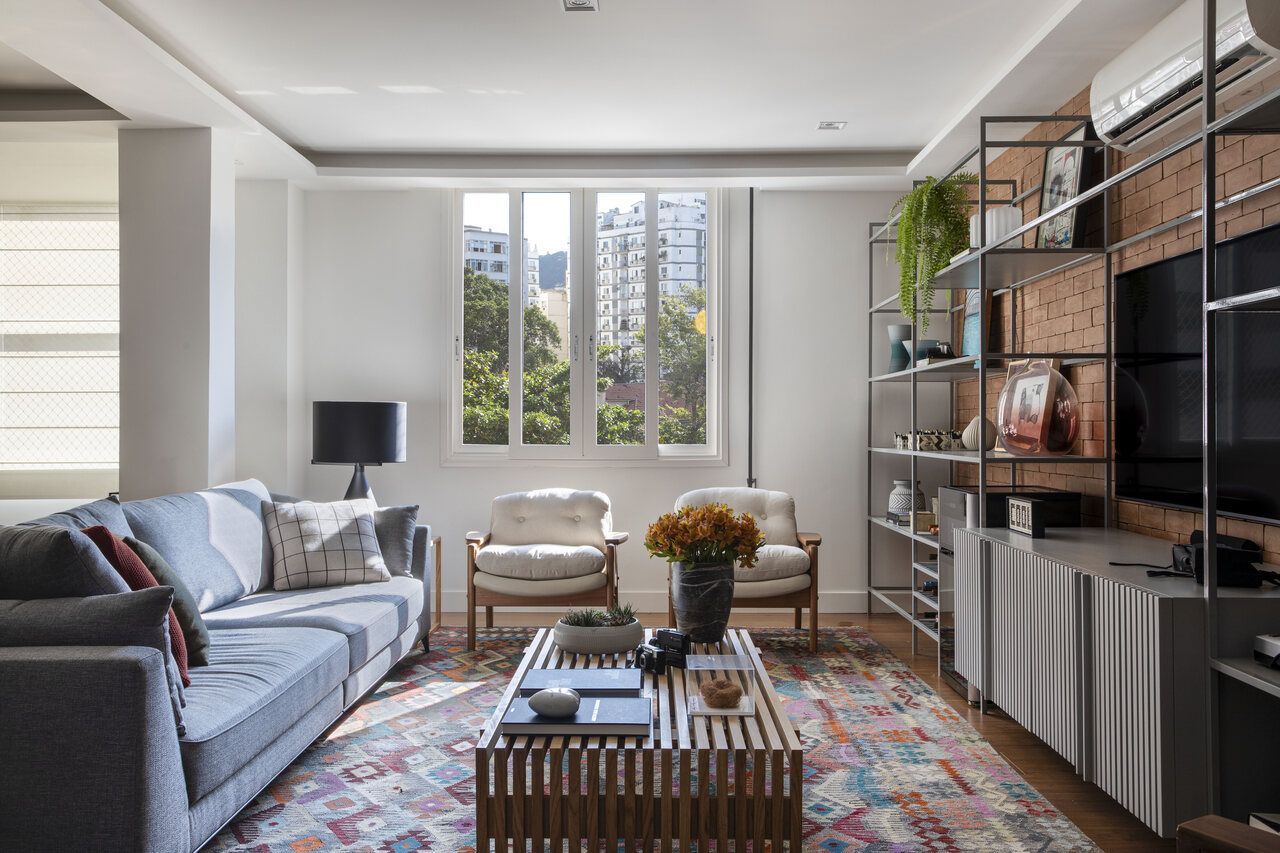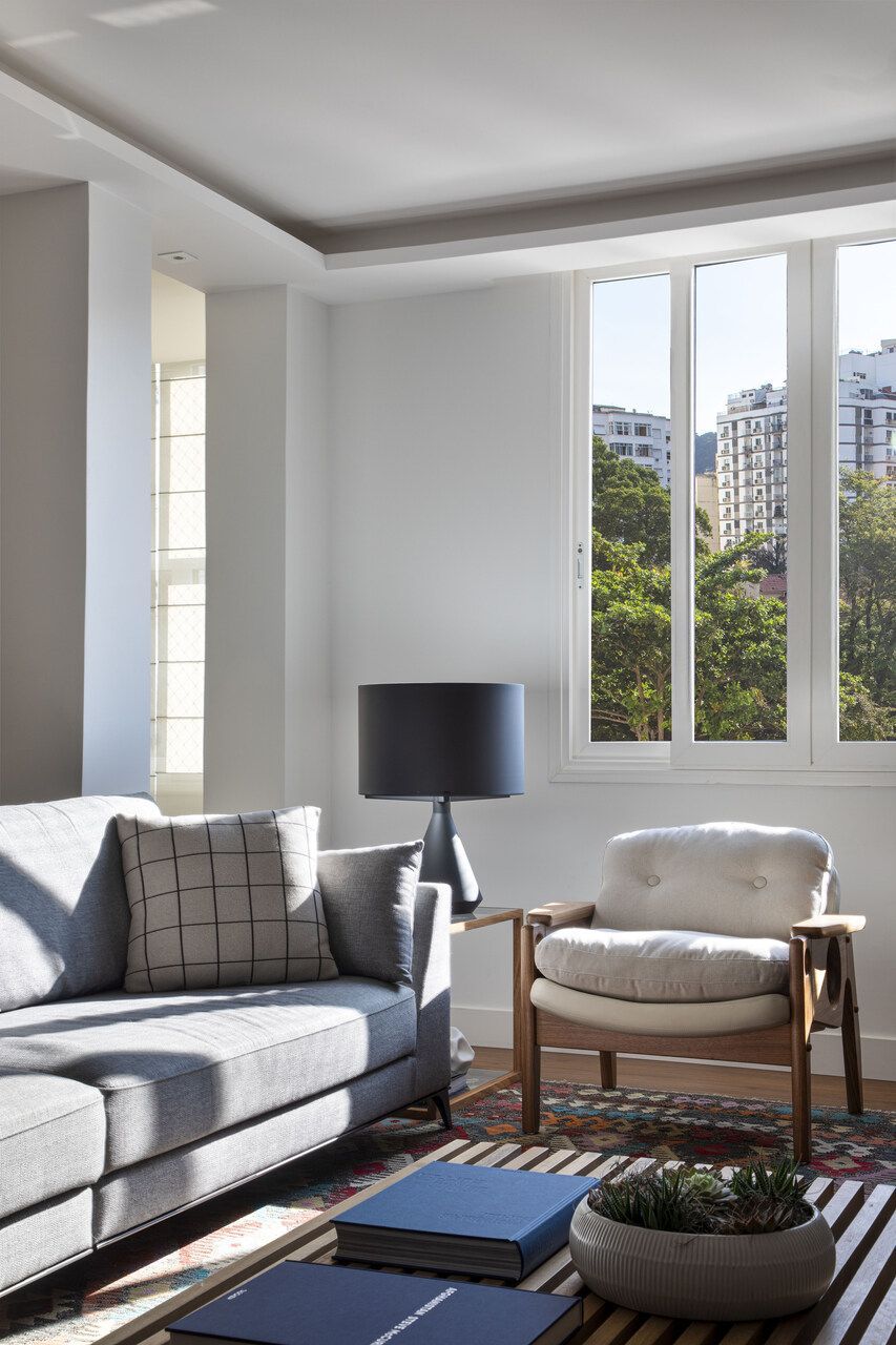 Assim que comprou este apartamento antigo de 210m², no Flamengo, Rio de Janeiro, um casal com uma filha de 10 anos e um cachorrinho, contratou um escritório de arquitetura especialmente para cuidar da parte mais estrutural da reforma. Em seguida, a arquiteta Cristina Bezamat foi chamada para fazer o projeto de interiores da área social, que tem 60m².
