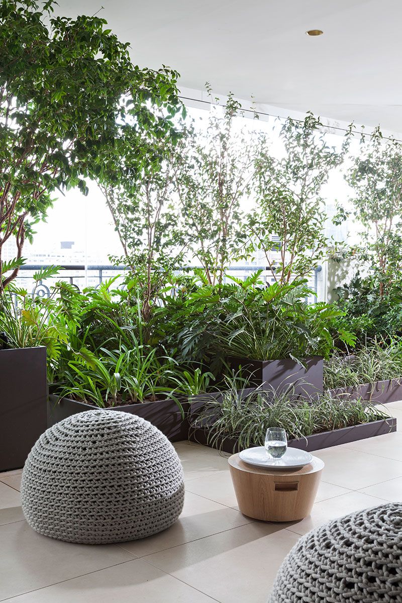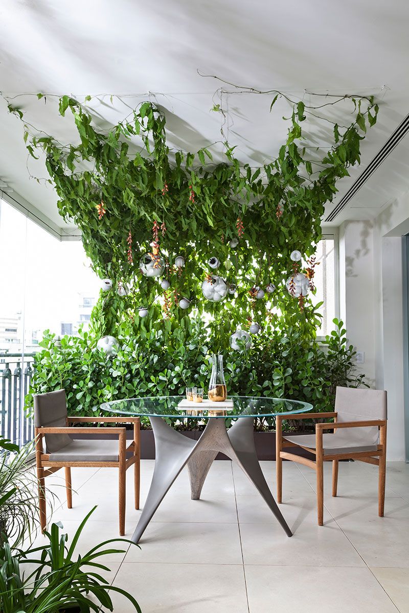 Uma dica para quem também quer um apartamento com jeito de casa é transformar a varanda em uma área verde.