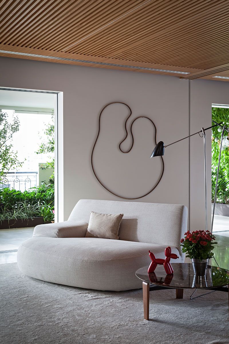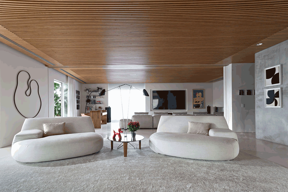O pedido dos moradores para o escritório Coletivo Arquitetos era de um apartamento com “ar de casa” e que pudesse servir como plano de fundo para as obras de arte, sem nenhuma interferência. Um dos grandes desafios que os profissionais tiveram com esse projeto foi o de transformar um apartamento neoclássico em um contemporâneo.