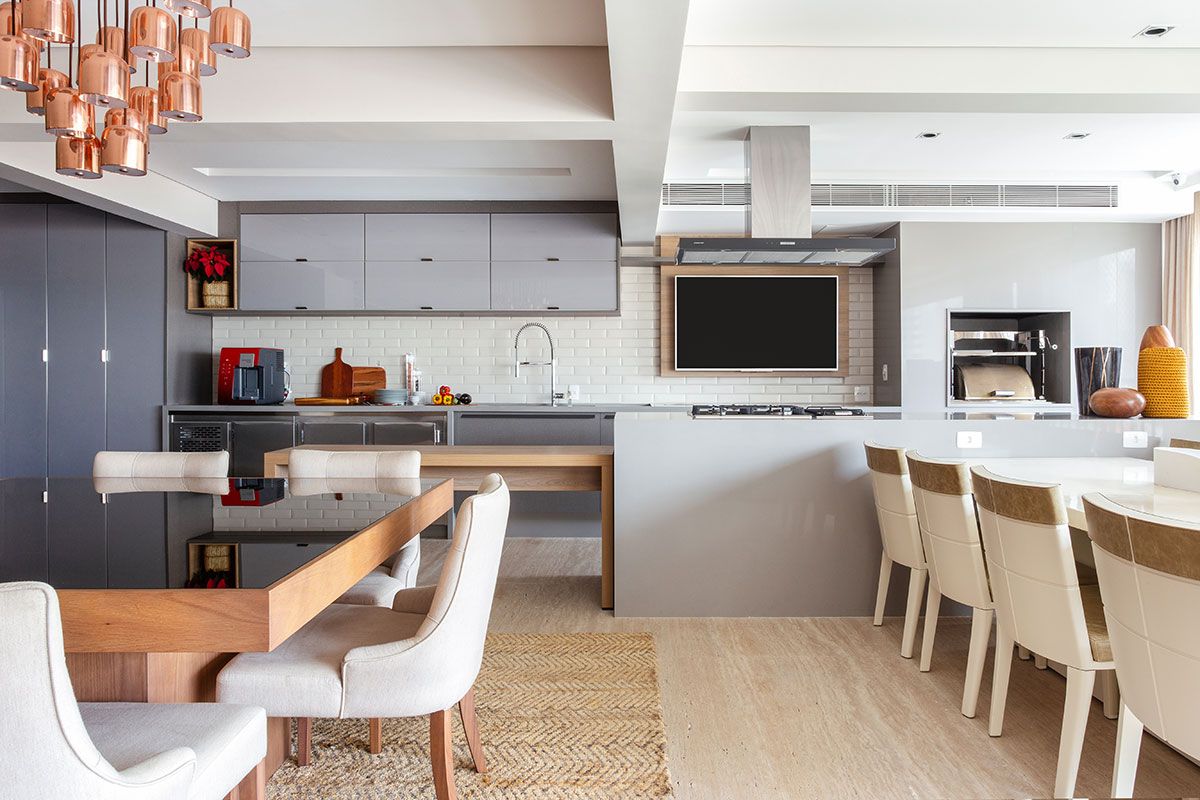 O escritório Dantas & Passos Arquitetura assina o projeto desse apartamento de 250m², que é fluído, sem obstáculos e com uma área social totalmente integrada. A ideia dos profissionais foi que o casal, com uma filha pequena, pudessem receber os amigos e ainda ter uma casa prática para o dia a dia.