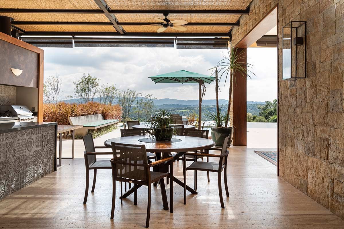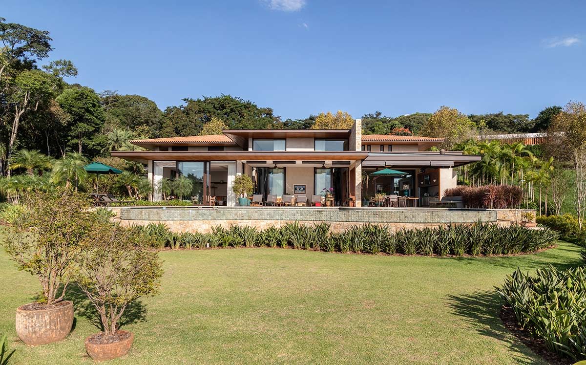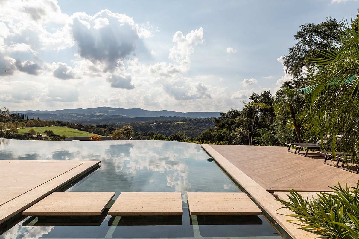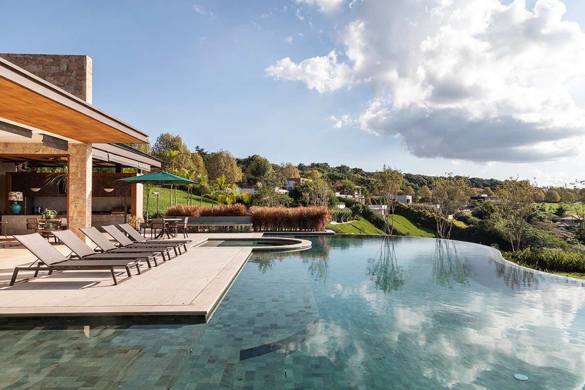 A arquiteta Gilda Meirelles é quem assina o projeto desta casa de campo situada no condomínio Quinta da Baroneza, pensada para receber uma família que vive no exterior e precisava de um refúgio para acomodá-los em longas temporadas no Brasil. Pensando nessa necessidade, o programa incluiu uma casa com conforto, ampla área de lazer e a solução da implantação do terreno, que era muito inclinado.