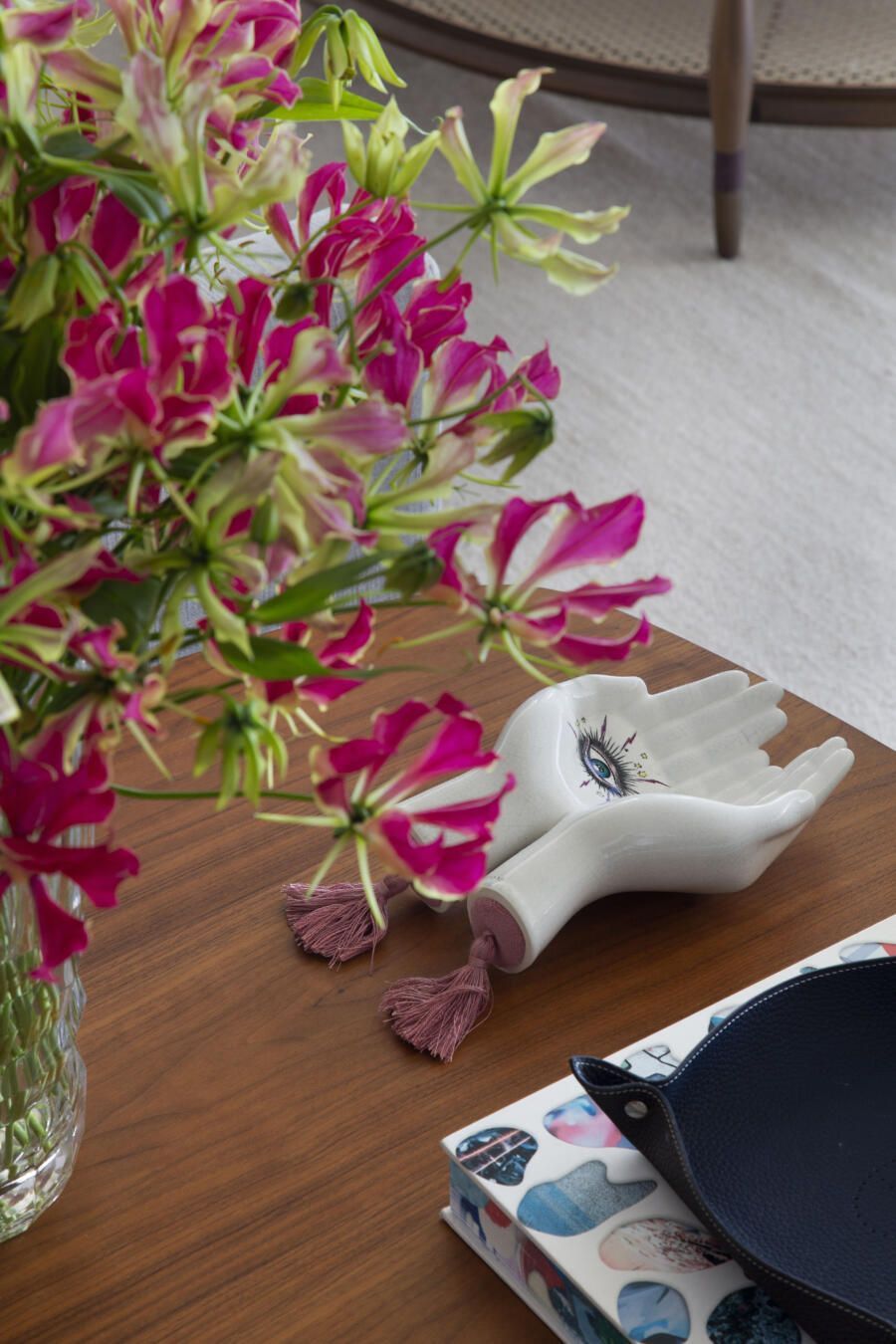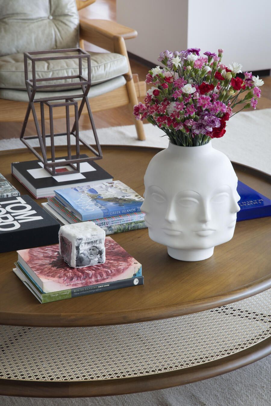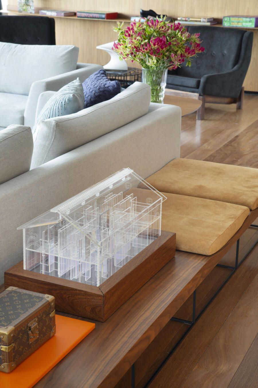 “Eles queriam um apartamento-galeria, mas que fosse, ao mesmo tempo, acolhedor. E espaço para expor também muitos objetos de design, alguns relacionados ao universo da moda, garimpados em viagens pelo mundo afora.”