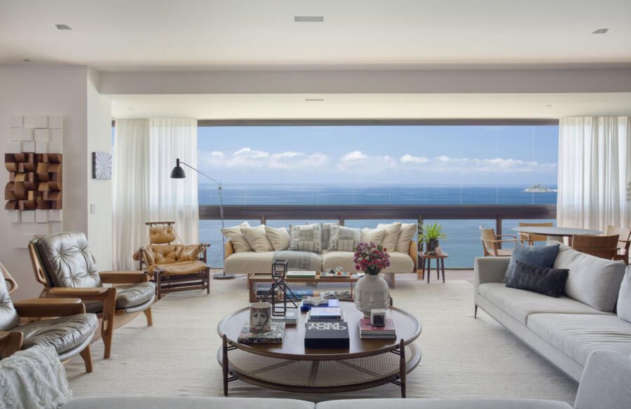 Uma reforma total que valorizasse uma coleção de obras de arte e inúmeros mobiliários brasileiros de design assinado. Esses foram os pedidos de um casal de colecionadores para este projeto assinado pela arquiteta Bianca da Hora do escritório Da Hora Arquitetura na Praia de São Conrado, Rio de Janeiro.