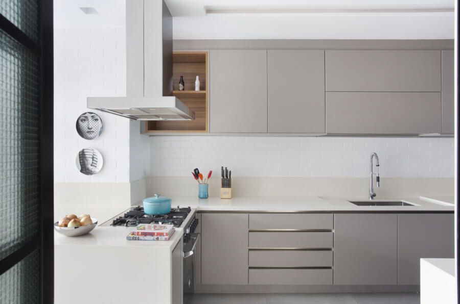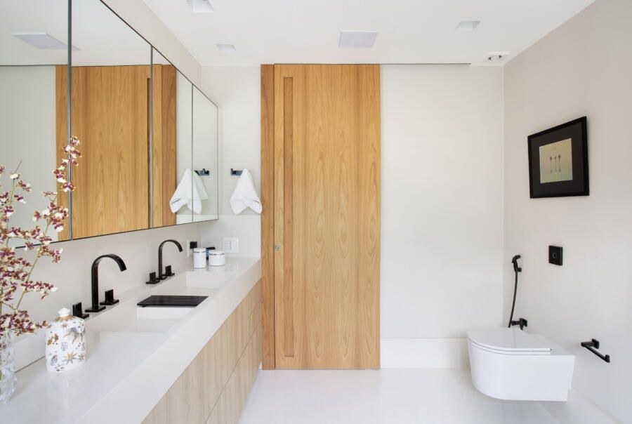 “Segui uma paleta de cores predominantemente branca, preta e cinza, sempre associada à maneira natural. Dessa forma, pude criar uma atmosfera cosmopolita, mas sem deixar de ser sofisticada.”
