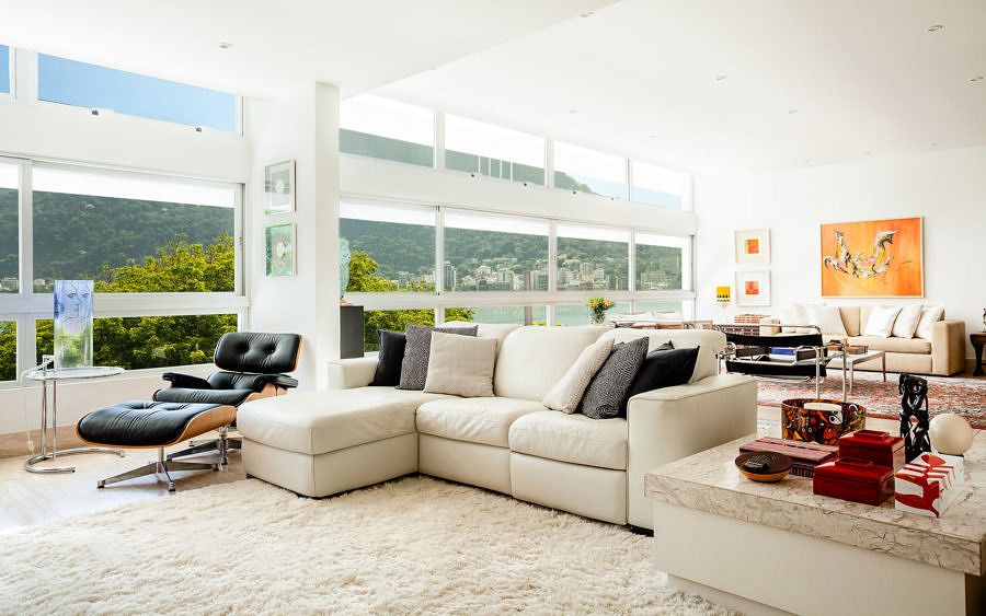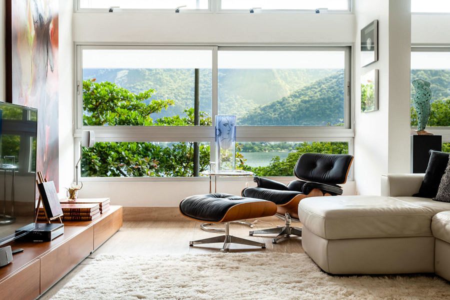 O projeto assinado pelo escritório Vivian Reimers é o lar da arquiteta e tinha um problema inicial, a falta de iluminação natural em alguns ambientes. Na parte frontal graças a ampla fachada que se abre à Lagoa Rodrigo de Freitas, no Rio de Janeiro, os ambiente recebem muita luz, mas na parte posterior é que foi um desafio.