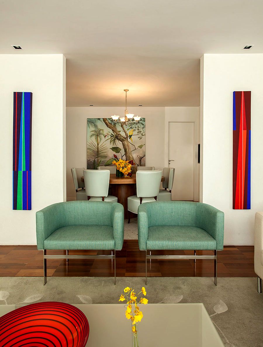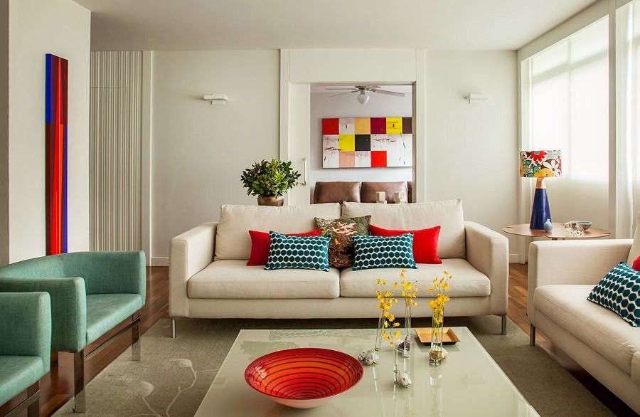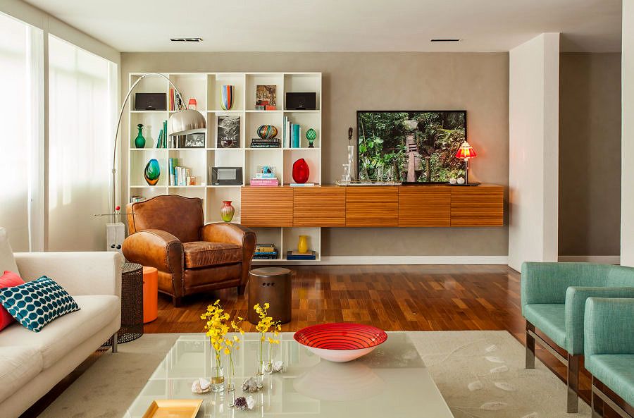 O marido, mais tradicional, queria um cantinho gostoso para ler, ouvir música. O filho, jovem, gosta de receber amigos e precisava de uma atmosfera mais aconchegante e acolhedora, e a Doriana, embora seja bastante clean, sentia falta de cores em casa.