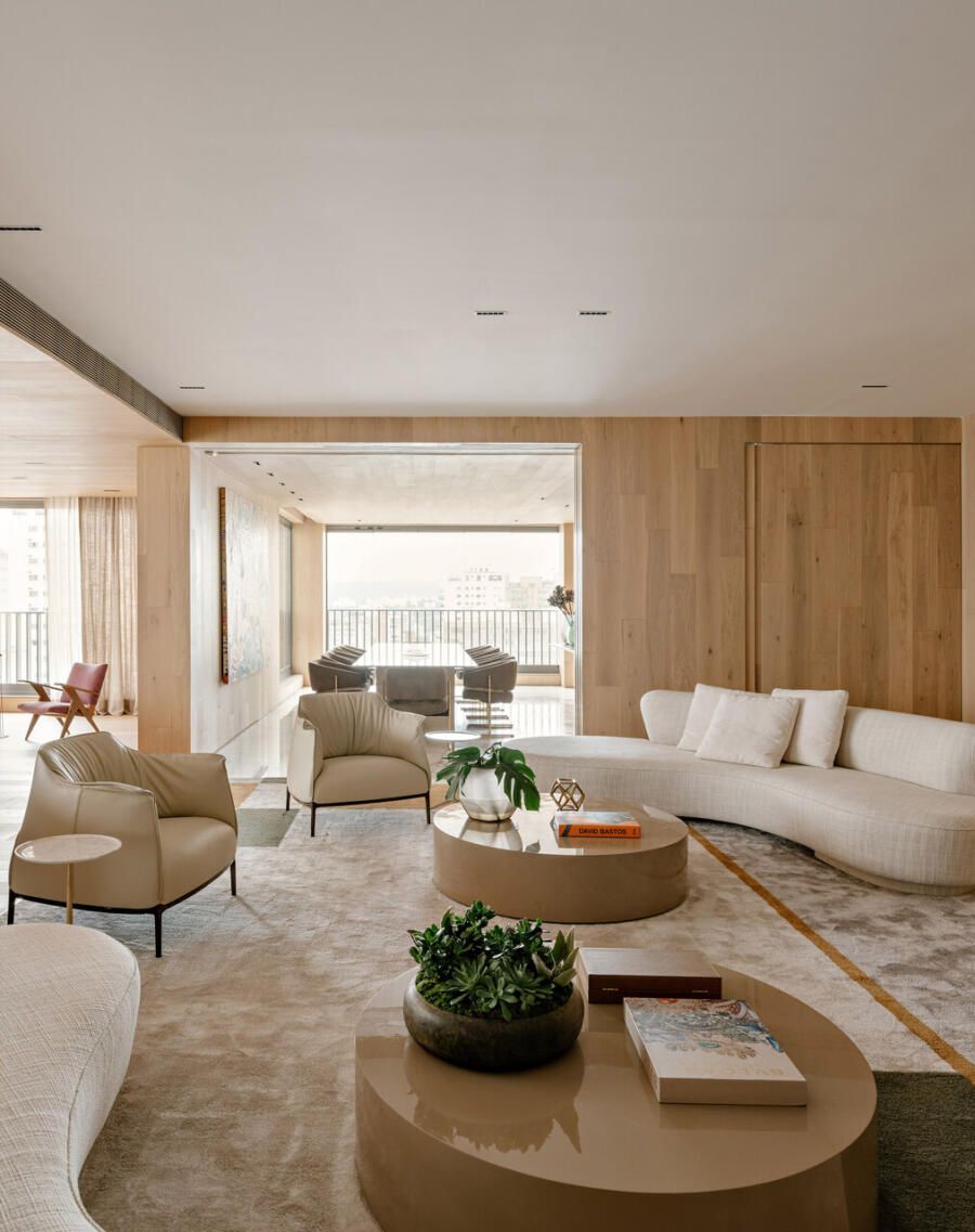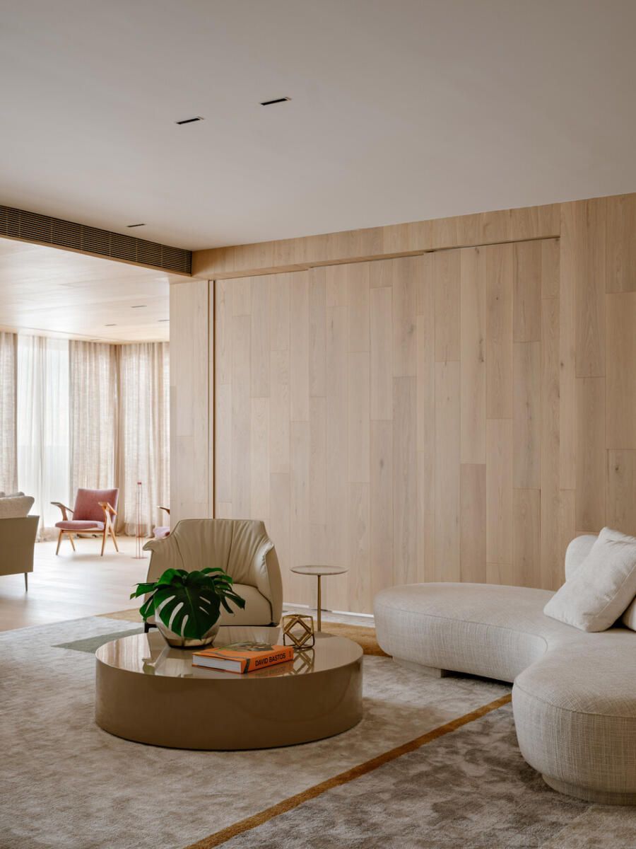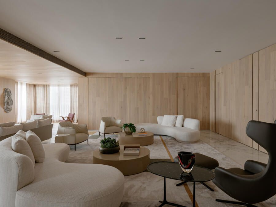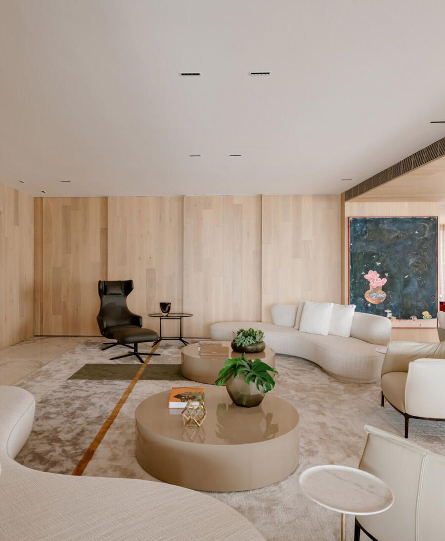 “Os clientes queriam um apartamento que unisse elegância e conforto, com ambientes leves e versáteis, que pudessem ser usados de forma dinâmica no dia a dia ou em momentos de receber amigos.”