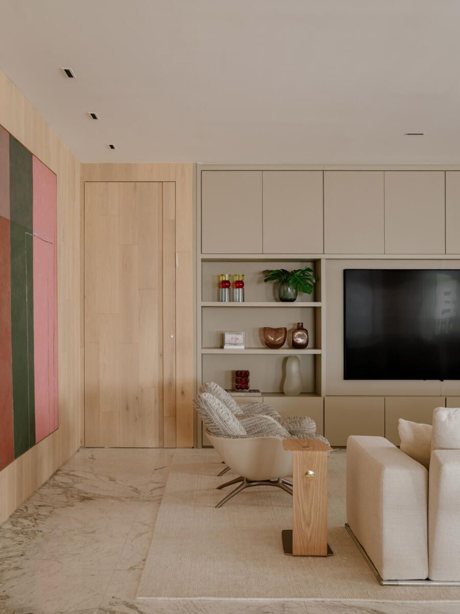 O resultado é um projeto que alia a sofisticação de uma estética atemporal à praticidade necessária para o cotidiano de uma família jovem — um apartamento onde arte, design e conforto se encontram em perfeita harmonia.