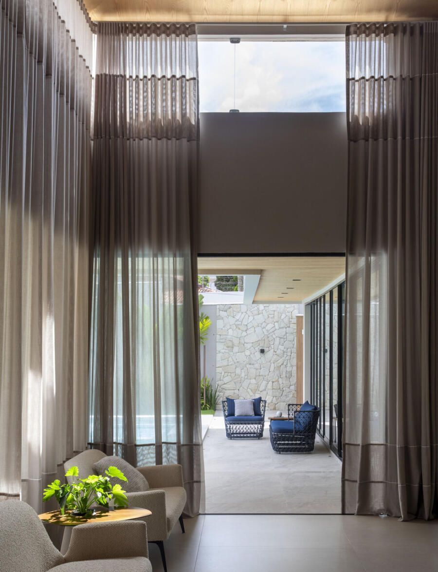 Assinado pela arquiteta Nádya Delgado e pela designer de interiores Naná Delgado, o projeto desta casa de 477m² teve como foco a valorização das áreas de convivência com a integração de ambientes e uso da iluminação natural, além da criação de uma atmosfera autoral, com estilo contemporâneo e minimalista marcado pela harmonia entre linhas puras e orgânicas.