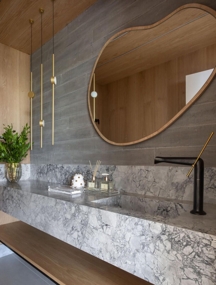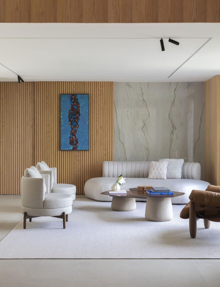 “O conceito do projeto explora uma fusão entre minimalismo contemporâneo e formas esculturais orgânicas, criando espaços com forte apelo estético e sensorial. Há uma clara intenção de provocar emoção através da forma, da luz e da materialidade””
