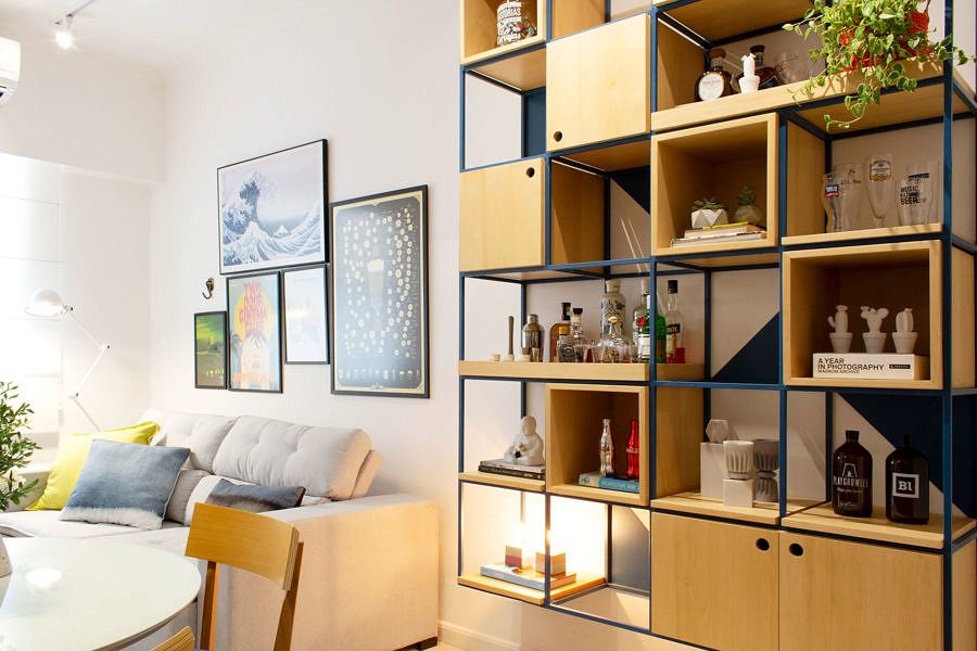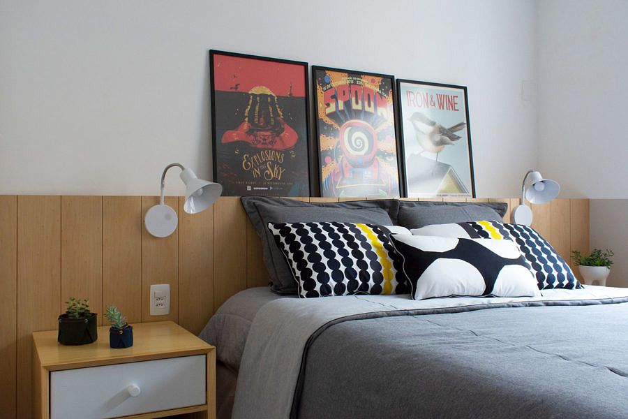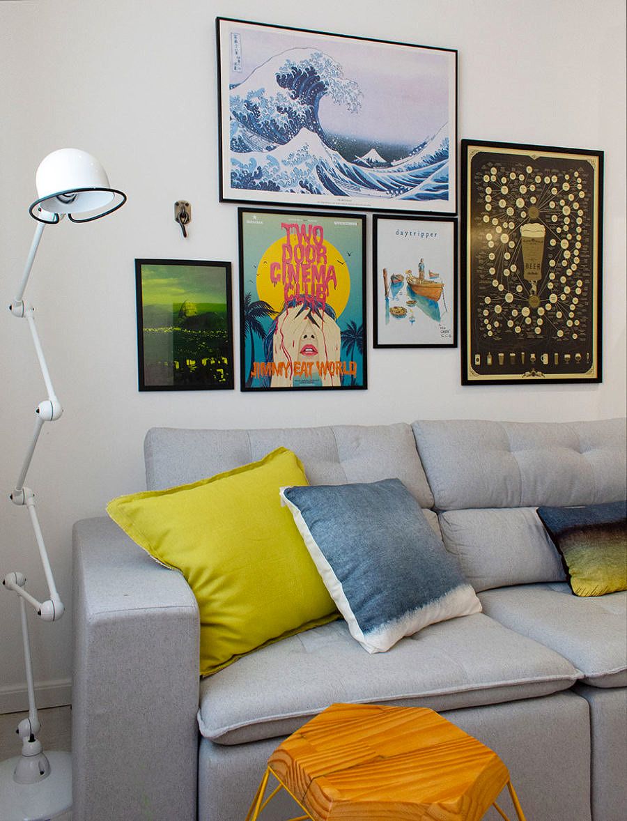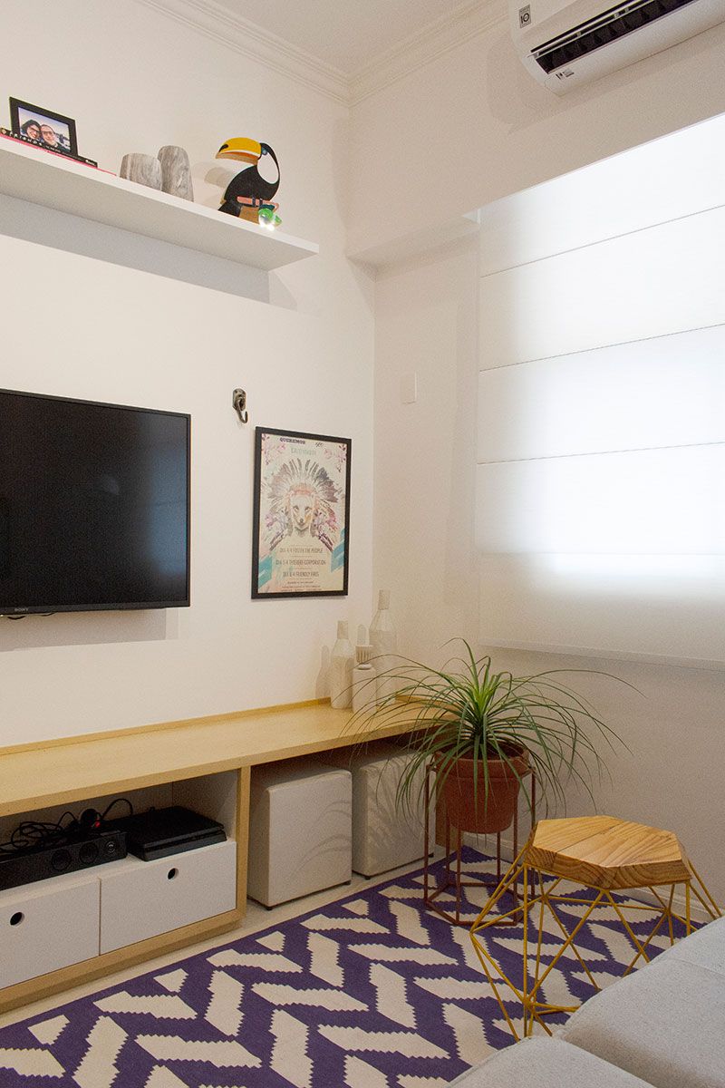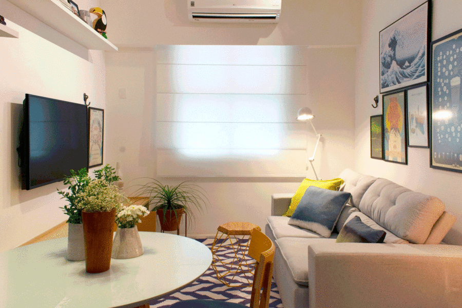 O Mira Studio assina o projeto de um apartamento, de 55m², em Copacabana, Rio de Janeiro. Os clientes fizeram um pedido especial: que não tivesse obra, pois o apê é alugado, mas queriam uma atmosfera jovem e descolada na sala, para receber os amigos, e um quarto aconchegante.