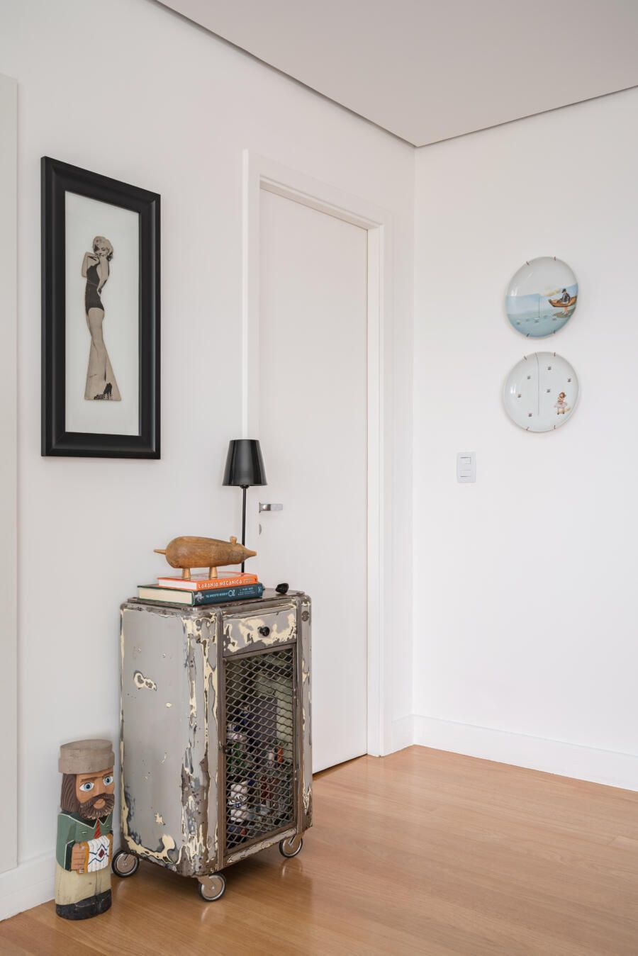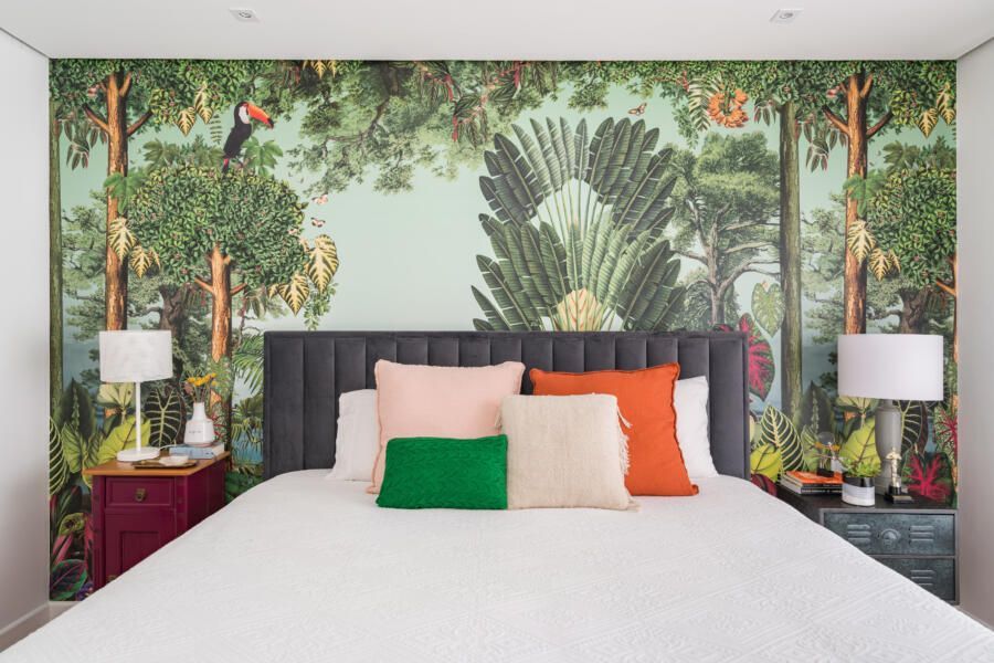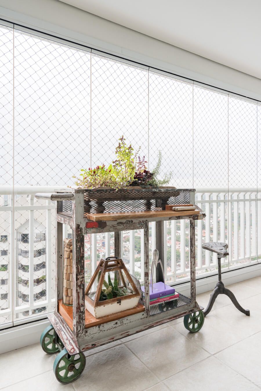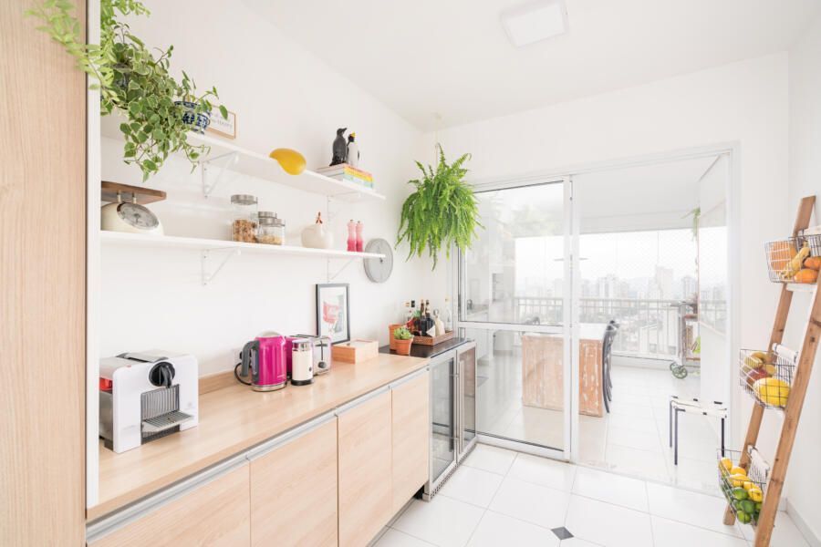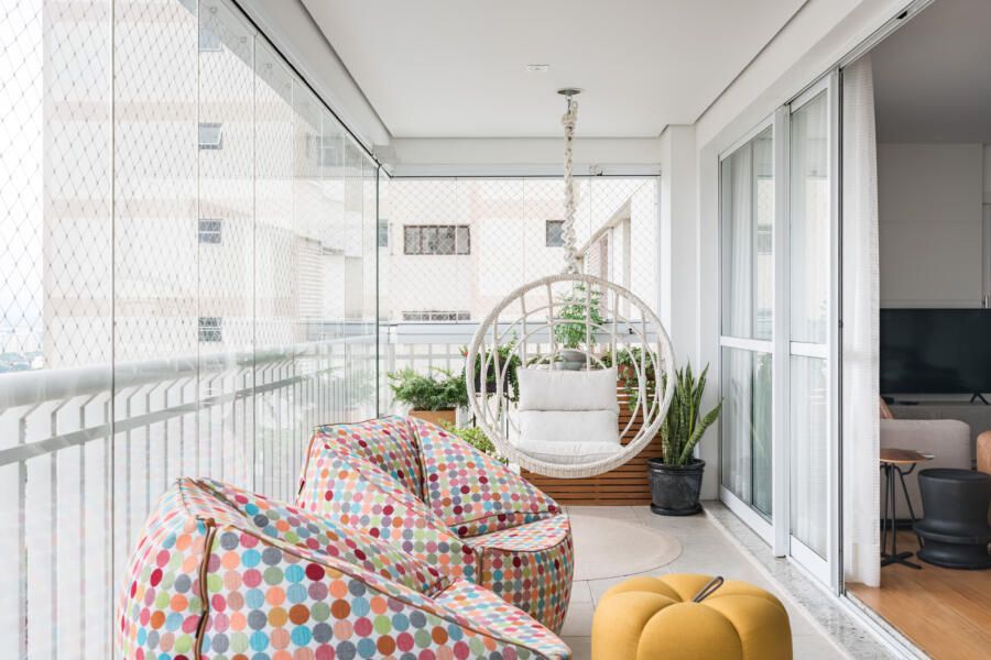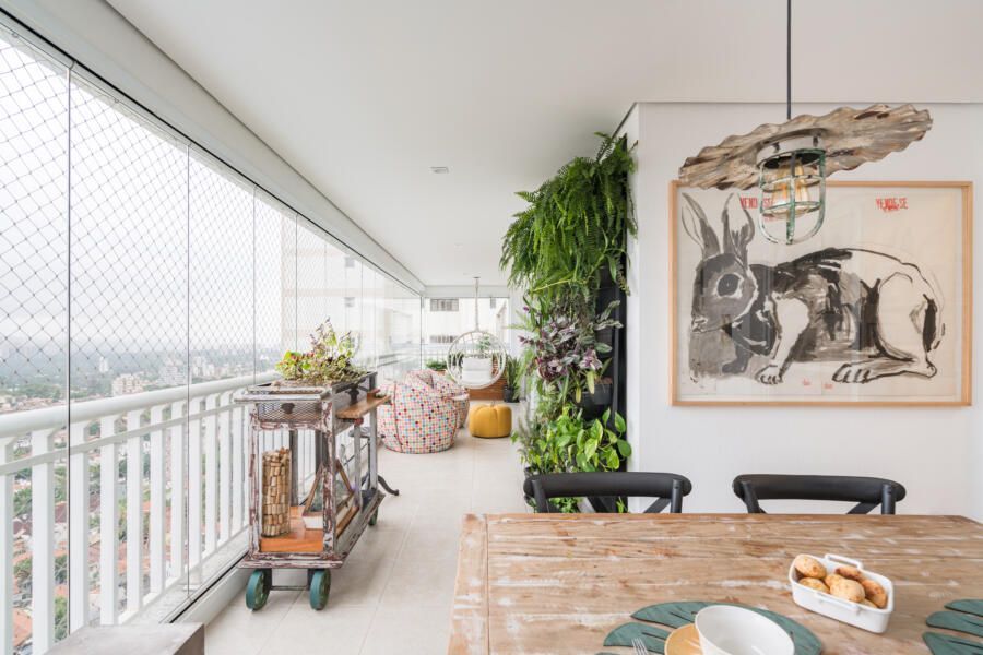 Além disso, opções ecléticas de decoração marcam o apartamento.