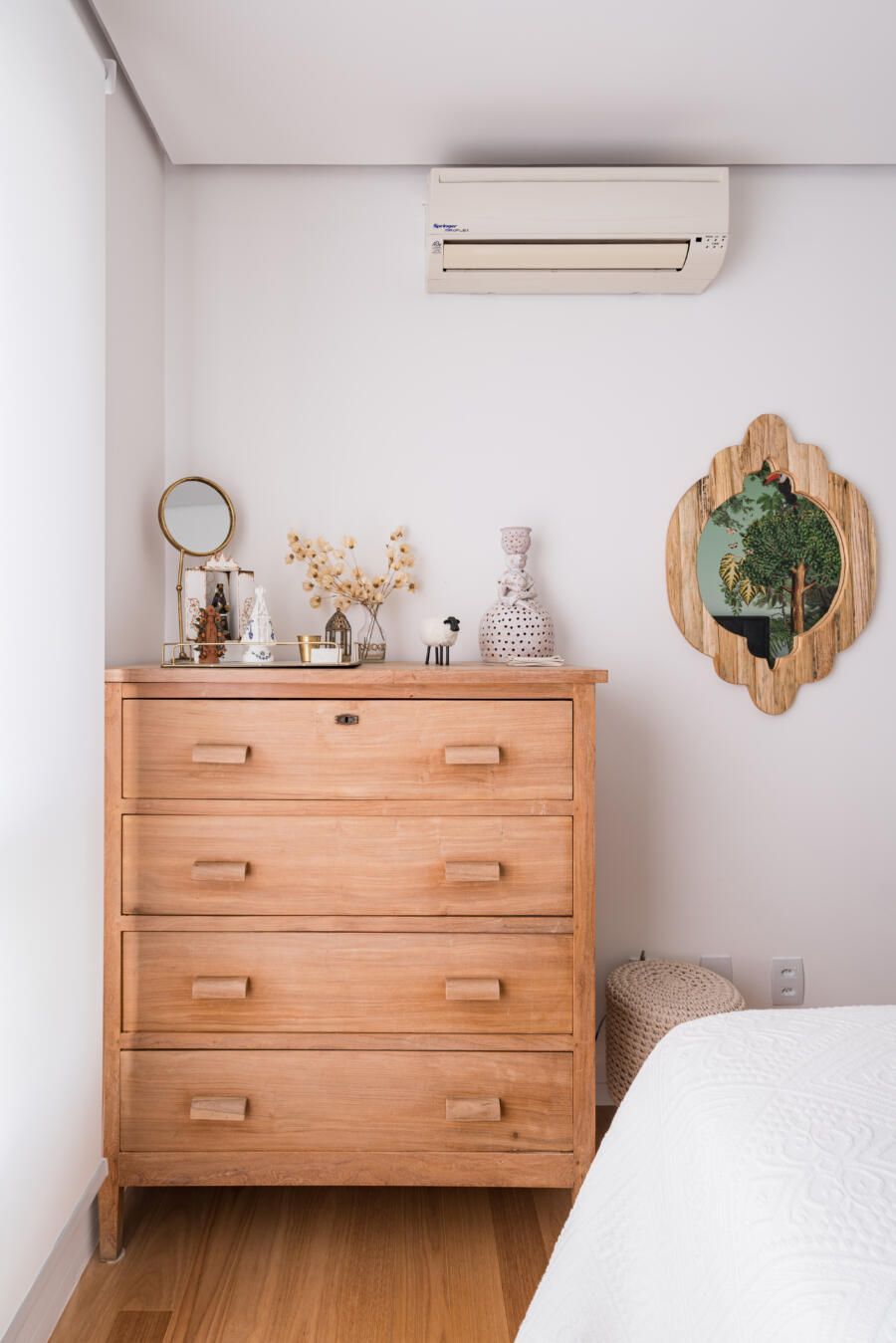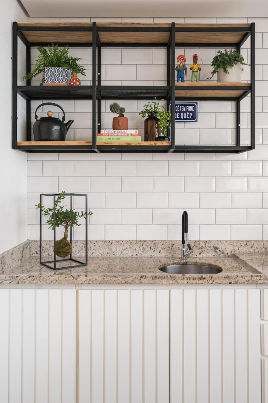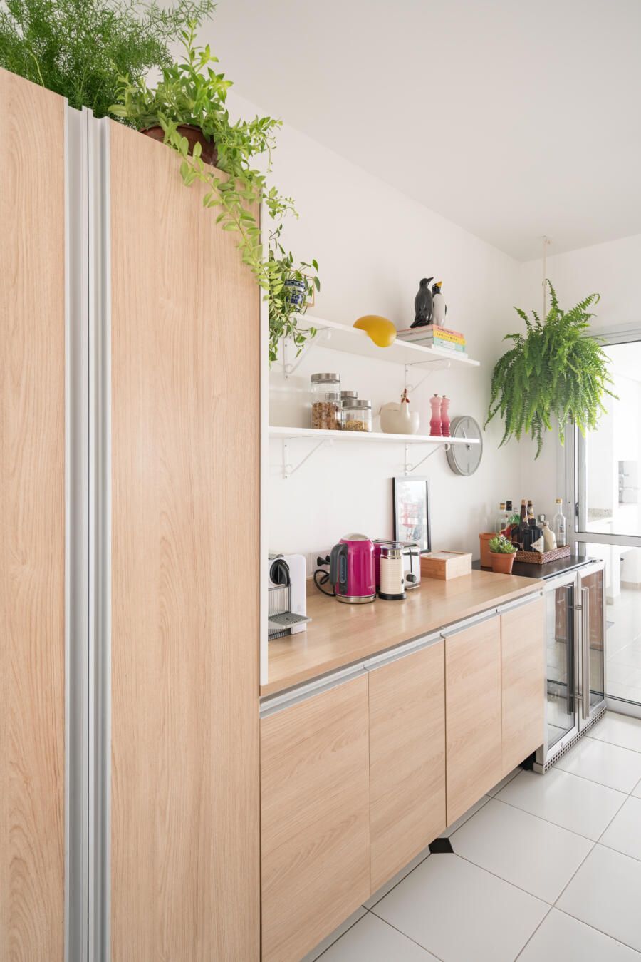 Além disso, opções ecléticas de decoração marcam o apartamento.