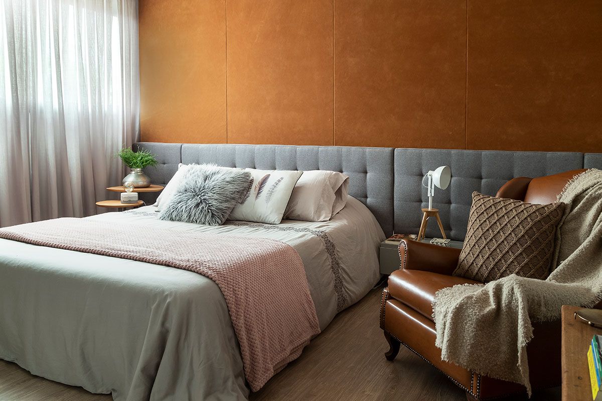O maior desafio do escritório foi conciliar o gosto e as necessidades do casal e acomodar todo o vestuário/acessórios da cliente que é designer de acessórios. Para solucionar o problema de espaço, um dos quartos foi transformado em closet com acesso direto da suíte e foram feitos dois banheiros, mantendo a individualidade de cada um.