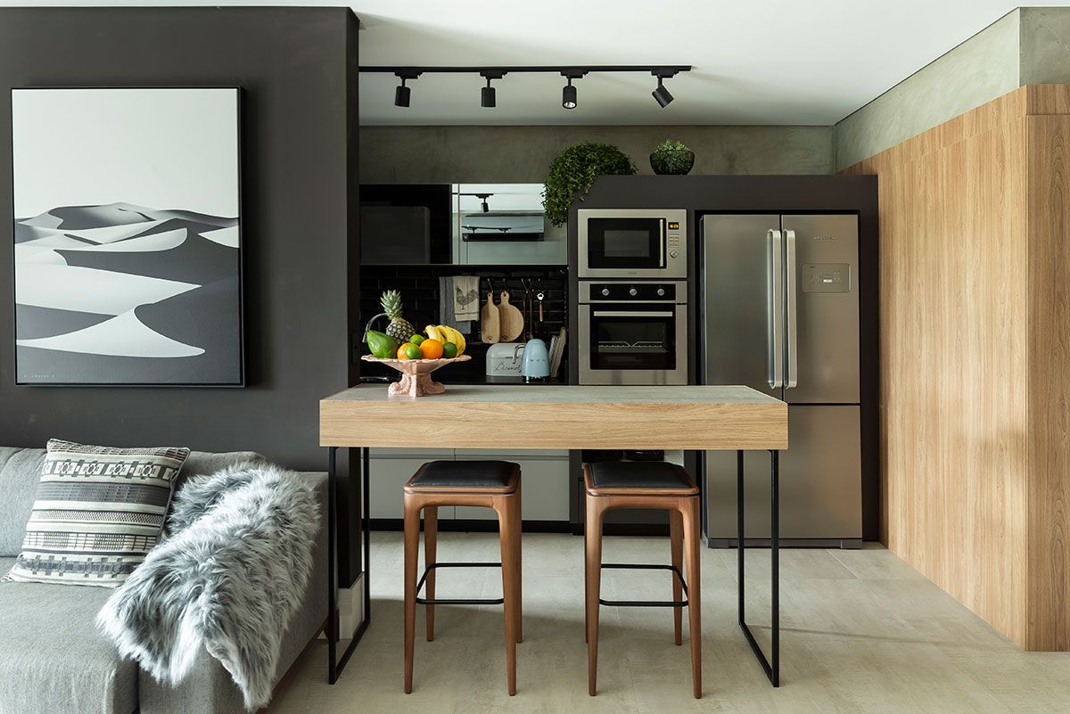 O Studiovert Arquitetura assina o projeto desse apartamento de 100m². A cliente pediu que o imóvel tivesse uma base sóbria, não muito feminino, pois o seu namorado estava de mudança para morarem juntos.
