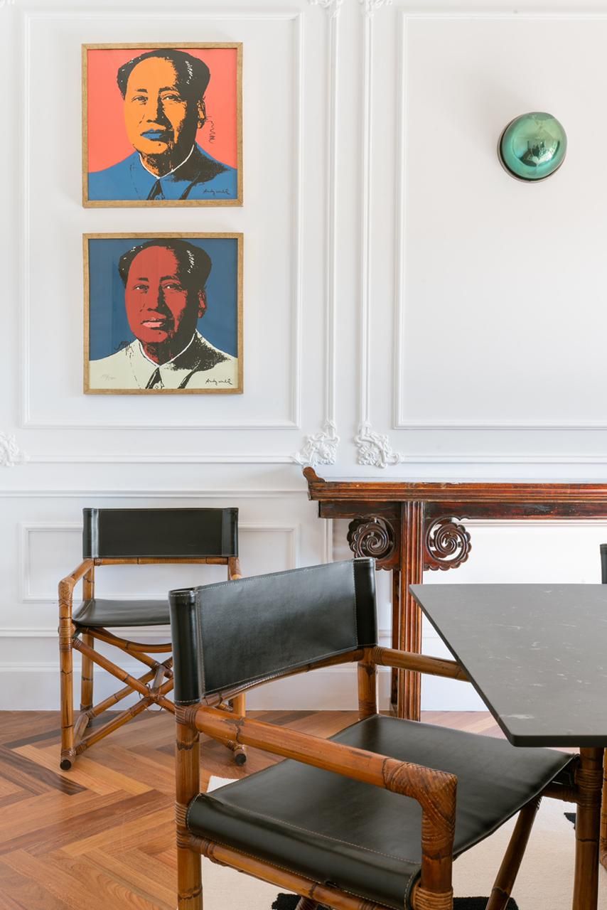 “A casa é repleta de itens de arte e móveis assinados, compondo assim uma grande galeria. Na sala de jantar, por exemplo, há 4 litografias de Mao Tsé-Tung numeradas e assinadas por Andy Warhol. Na área social, a ideia foi criar algo mais preto e branco com cores em alguns móveis e quadros, enquanto os quartos são ultra coloridos.”