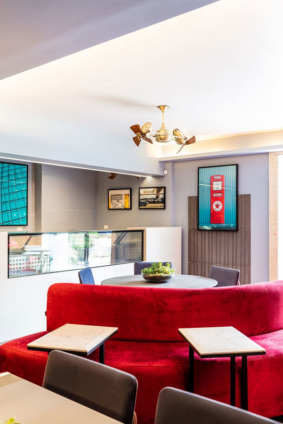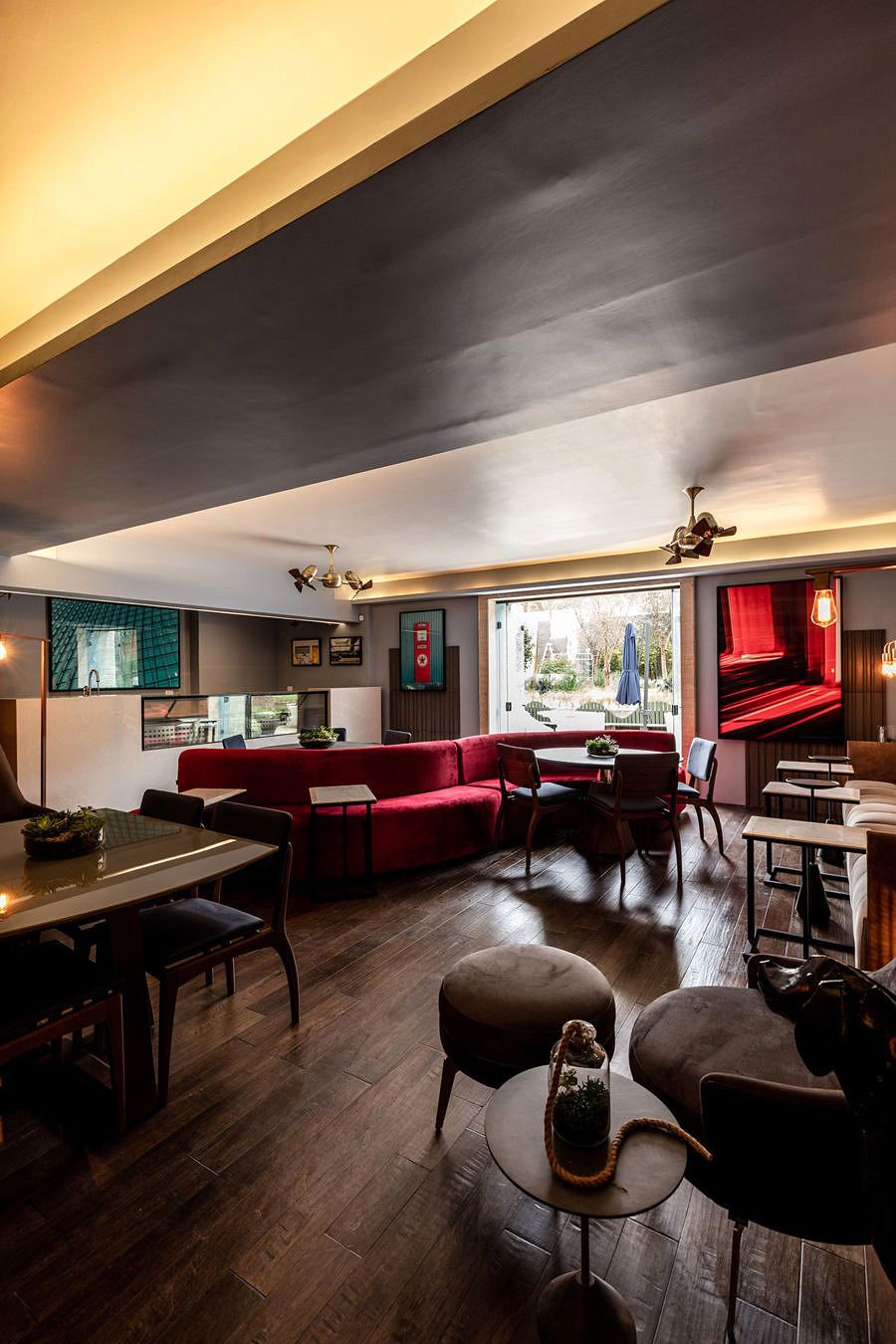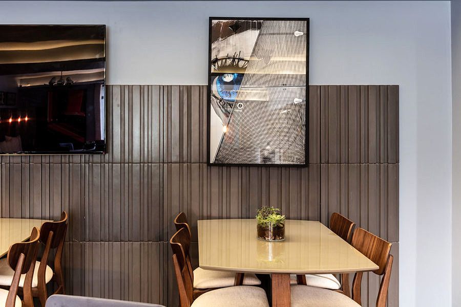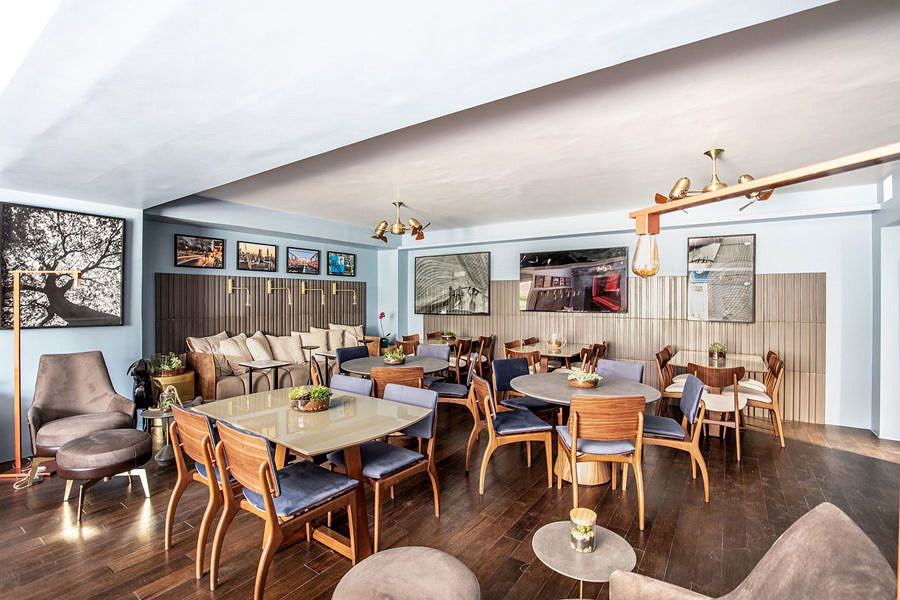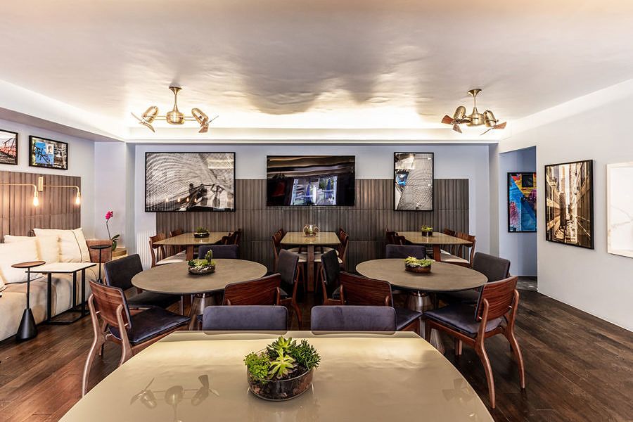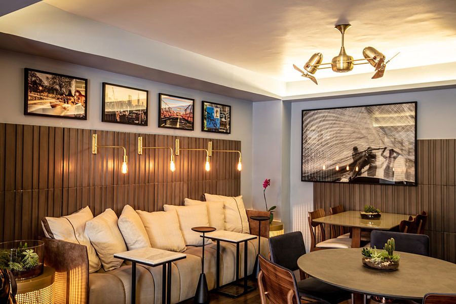 Com ambientes interno e externo compostos por diferentes estilos de mesas e cadeiras com estofados de cores vibrantes, além de acabamentos que alinham design e sustentabilidade. A disposição do layout também favorece um clima descontraído e ideal para reunir pessoas em um mesmo local, para que possam conversar e fazer novos contatos.