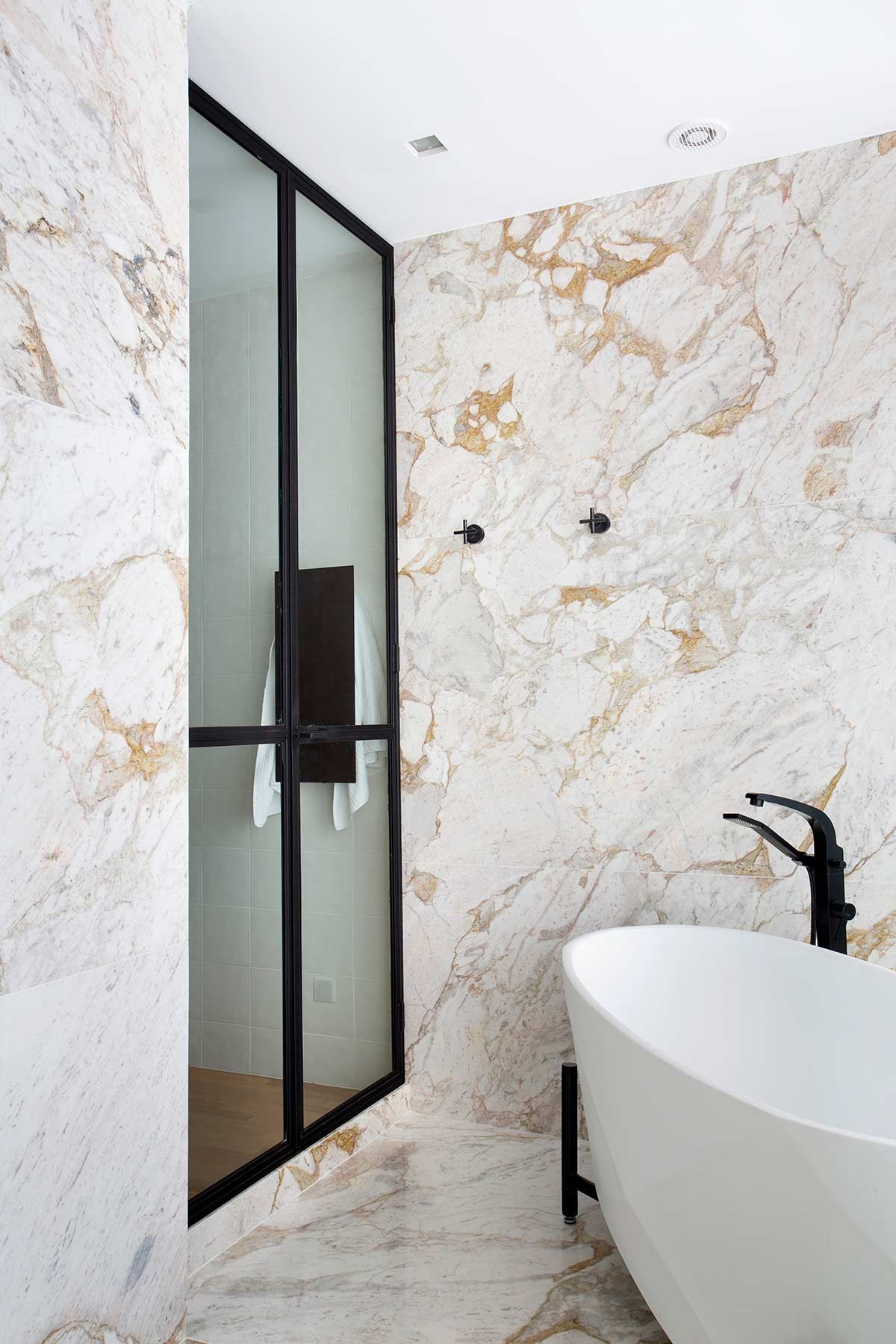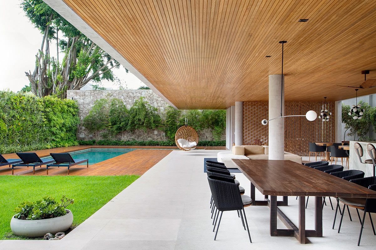 O banheiro da suíte mudou completamente. O mármore, antes marrom imperial, foi substituído pelo Calacatta da Michelangelo Mármores do Brasil nas paredes e no piso, imprimindo a atmosfera atual, clara e relaxante que a moradora desejava. Além disso, a área externa conta com piscina e uma varanda gourmet ampla, ótima para reunir a família e os amigos – uma das atividades prediletas da atriz.