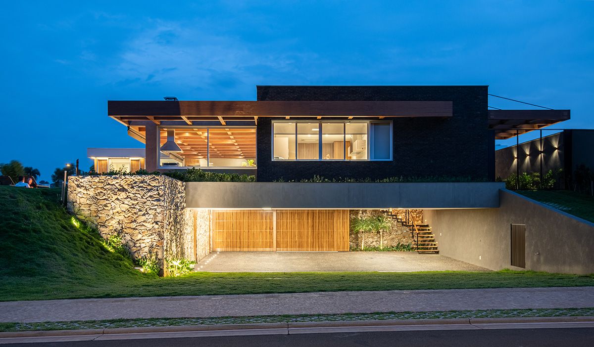 Terreno de esquina + inclinação acentuada: com certeza o desafio desse projeto foi a implantação. A integração dos ambientes foi o ponto principal, então conectamos as áreas comuns à paisagem, para os moradores aproveitarem a natureza e o pôr do sol.