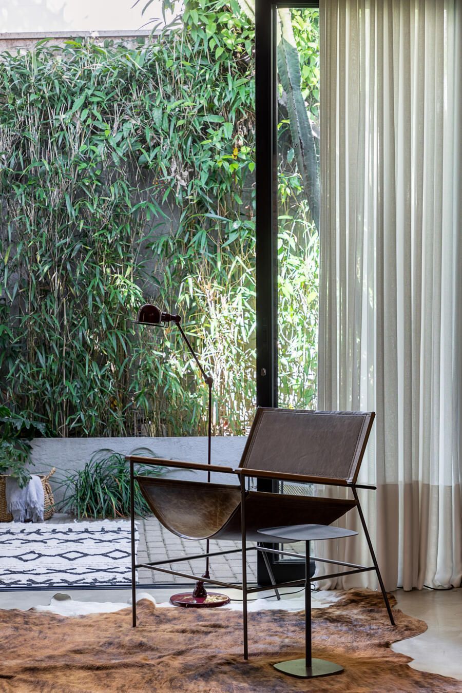 “A casa fica no coração da Vila Nova Conceição, cercada de muito verde e queríamos integrar esse verde no escritório. Por isso, o fizemos todo envidraçado para aproveitar a luz natural e proporcionar uma vista para a vegetação existente na vizinhança e na casa.”
