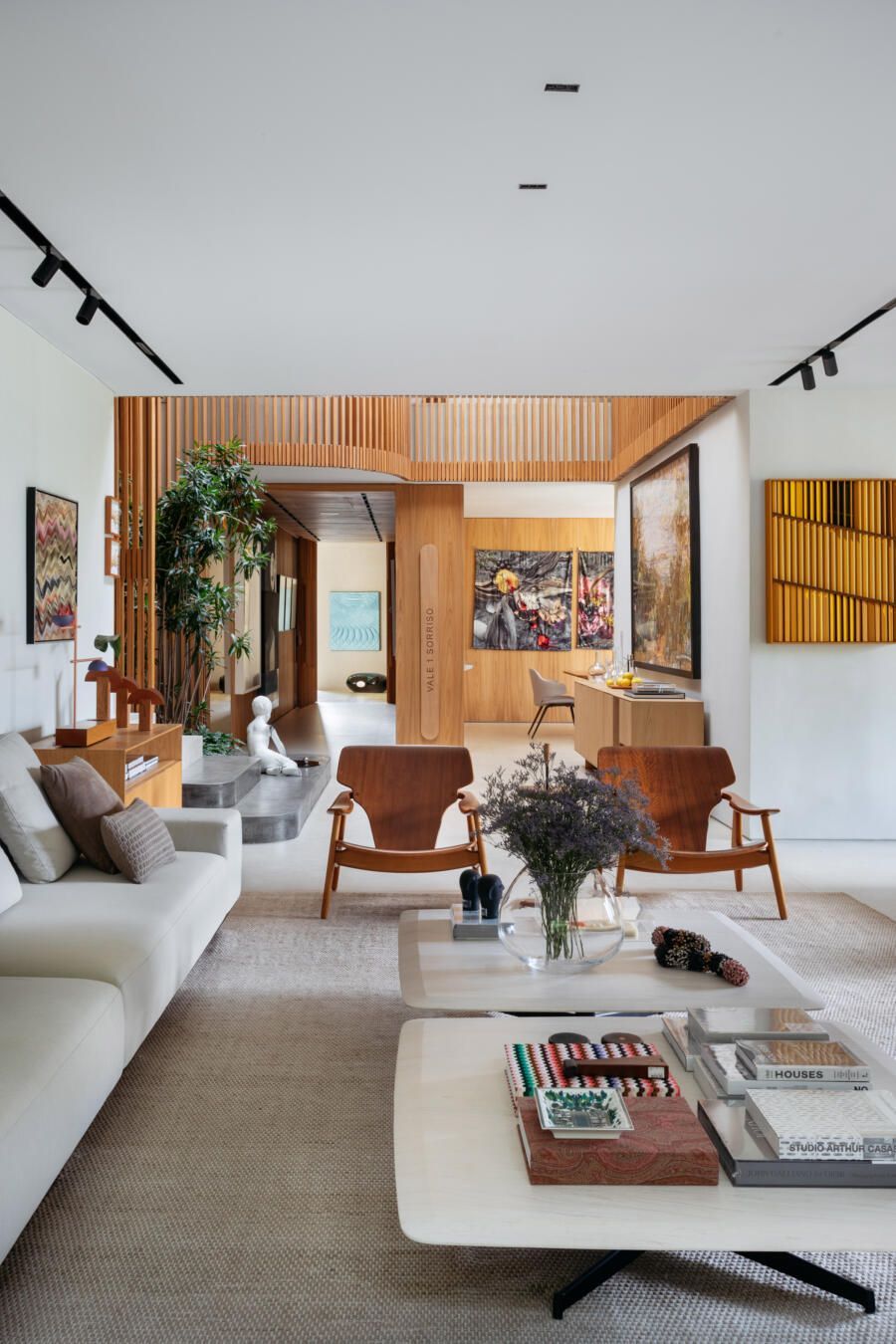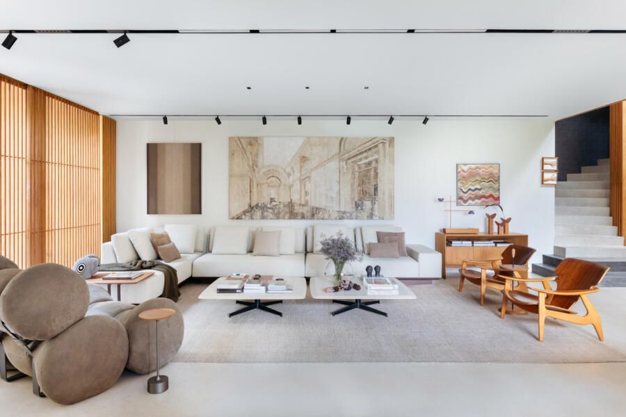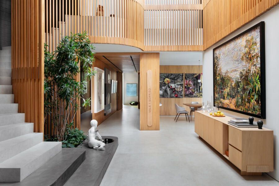 Sobre o acervo que deixa a casa com ares de galeria de arte, os arquitetos ainda afirmam: