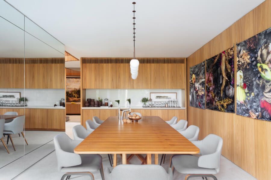 “Em uma reforma anterior também conduzida por nosso escritório, os clientes já haviam apontado uma predileção pelo uso de madeira natural e nós seguimos apostando nesse material, que também adoramos.”