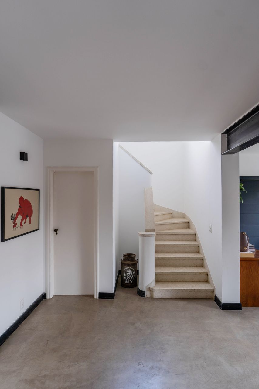 Transformar uma casa dos anos 1950 em sua própria galeria, com estilo despojado e muita integração entre ambientes. Foi com esse desejo que nasceu o projeto em Pinheiros, São Paulo, assinado pelo escritório MNBR Arquitetos. O novo morador, apaixonado por arte e design, queria mais do que um simples apartamento: buscava uma arquitetura capaz de ser palco para sua coleção, um cenário neutro que revelasse suas obras, peças de viagem e móveis icônicos. Junto da namorada, sonhava com jardins generosos, ambientes integrados e uma suíte com vista para o verde, onde a cidade pudesse parecer distante.