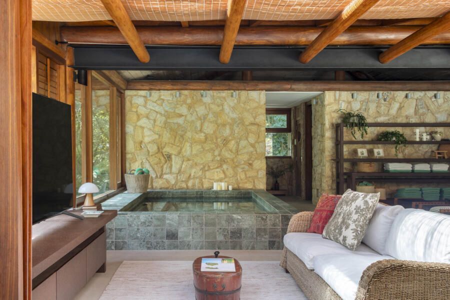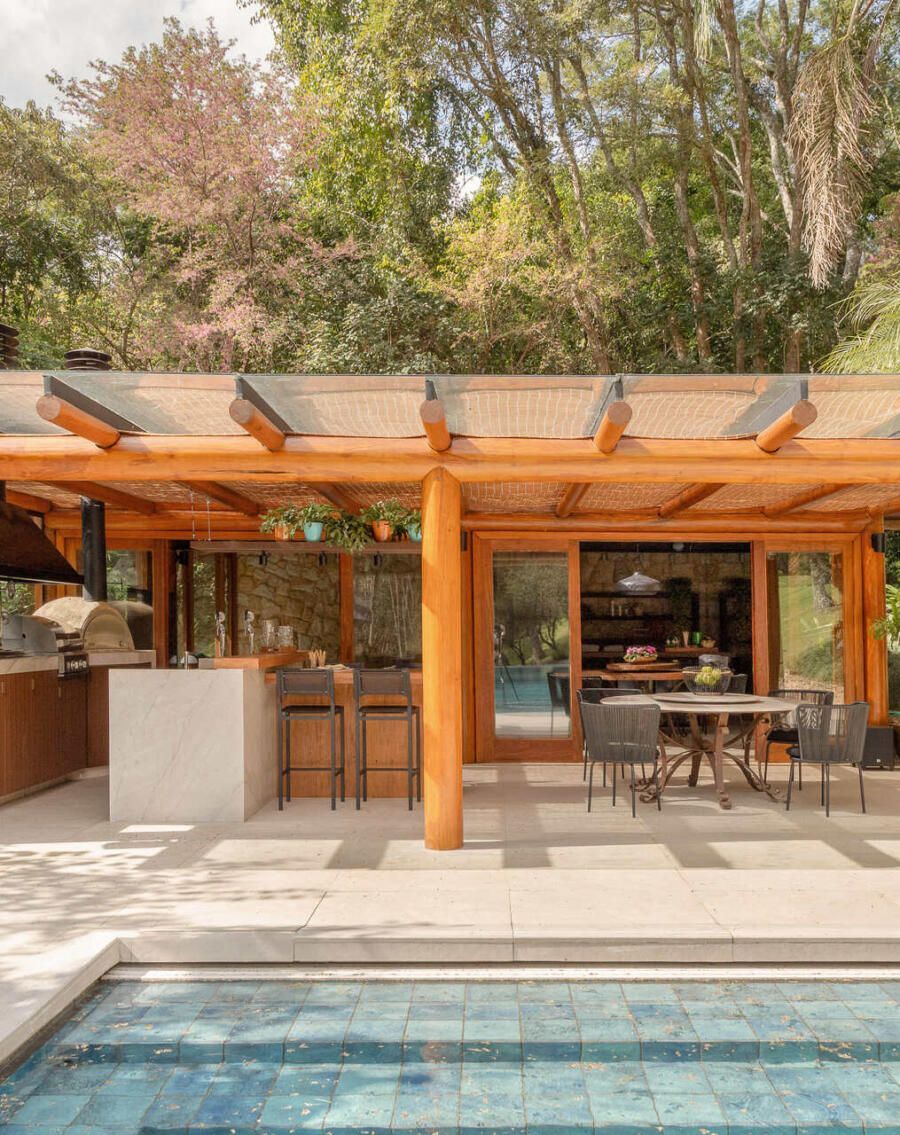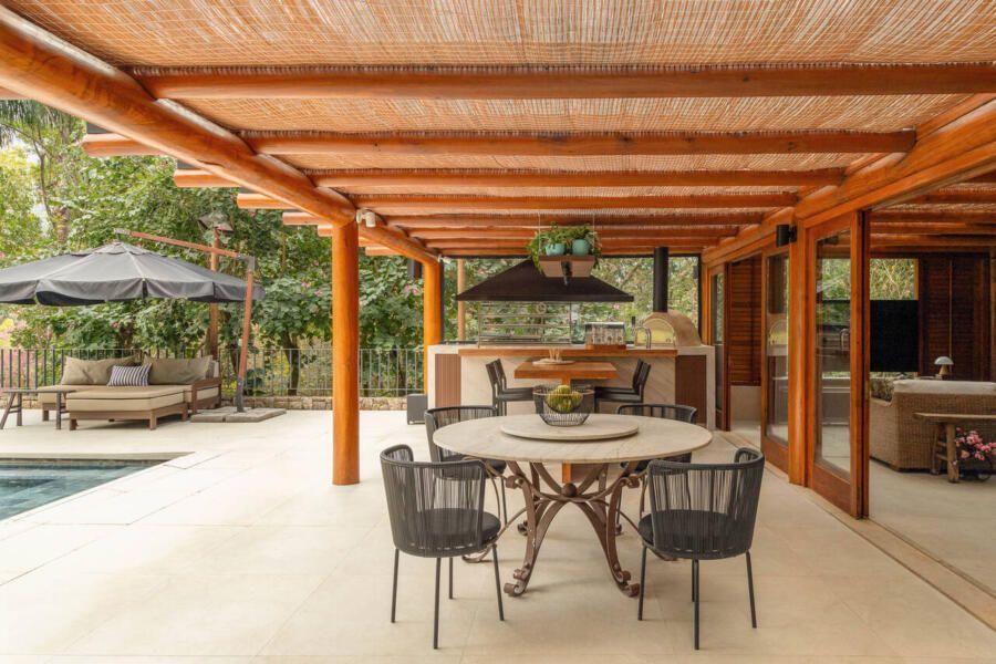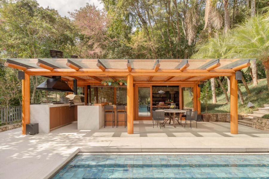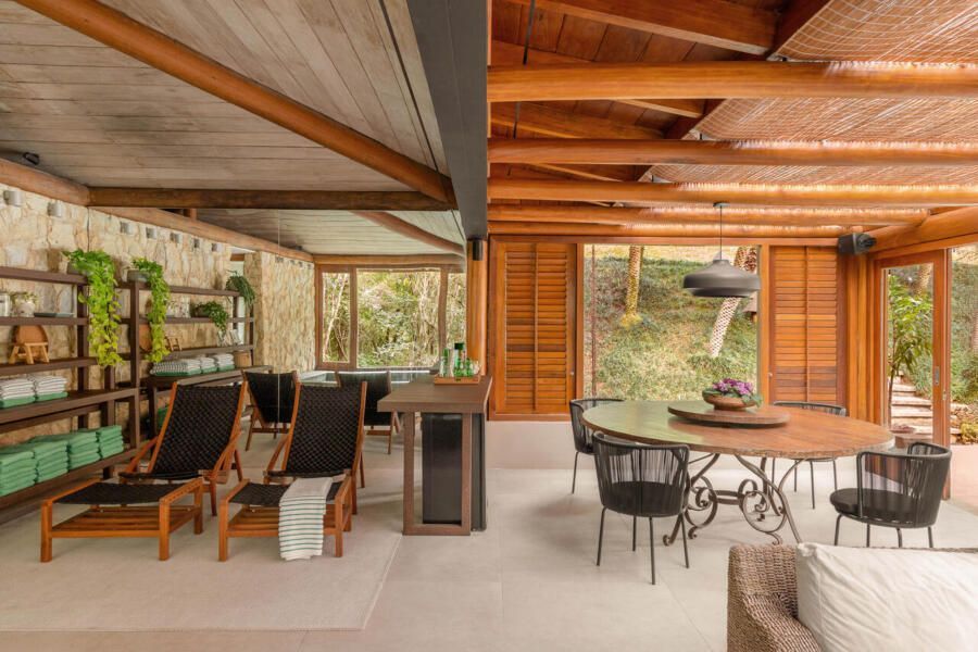 Na região serrana do Rio de Janeiro, em Petrópolis, a arquiteta Marcela Martins foi responsável por transformar uma construção existente em um generoso anexo de lazer pensado para acompanhar o ritmo descontraído de uma casa de campo. O projeto nasceu do desejo de um empresário do setor de moda, pai de três filhos, de criar um espaço capaz de acolher desde momentos íntimos em família até encontros animados com amigos, sempre em sintonia com a paisagem verde que envolve a propriedade.