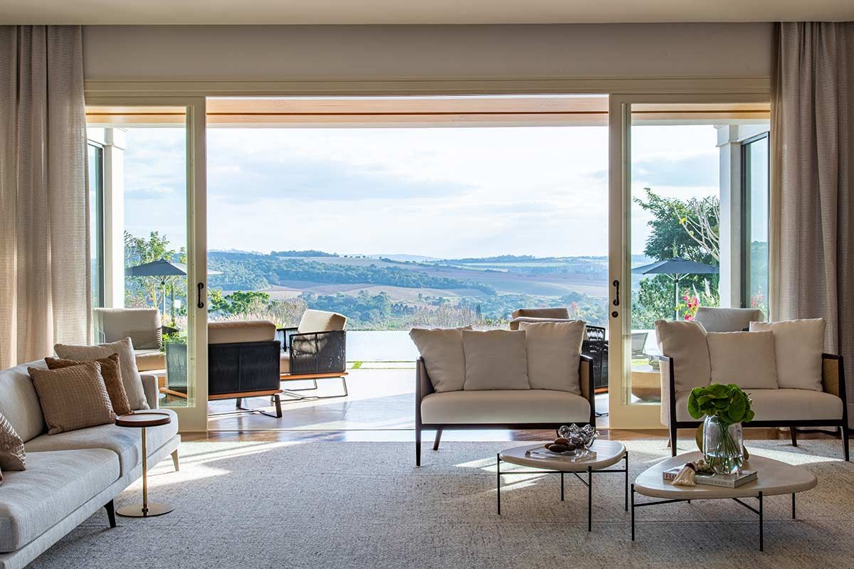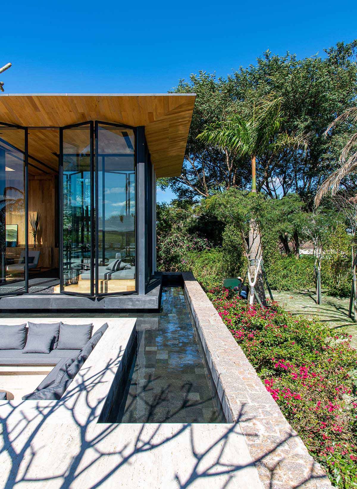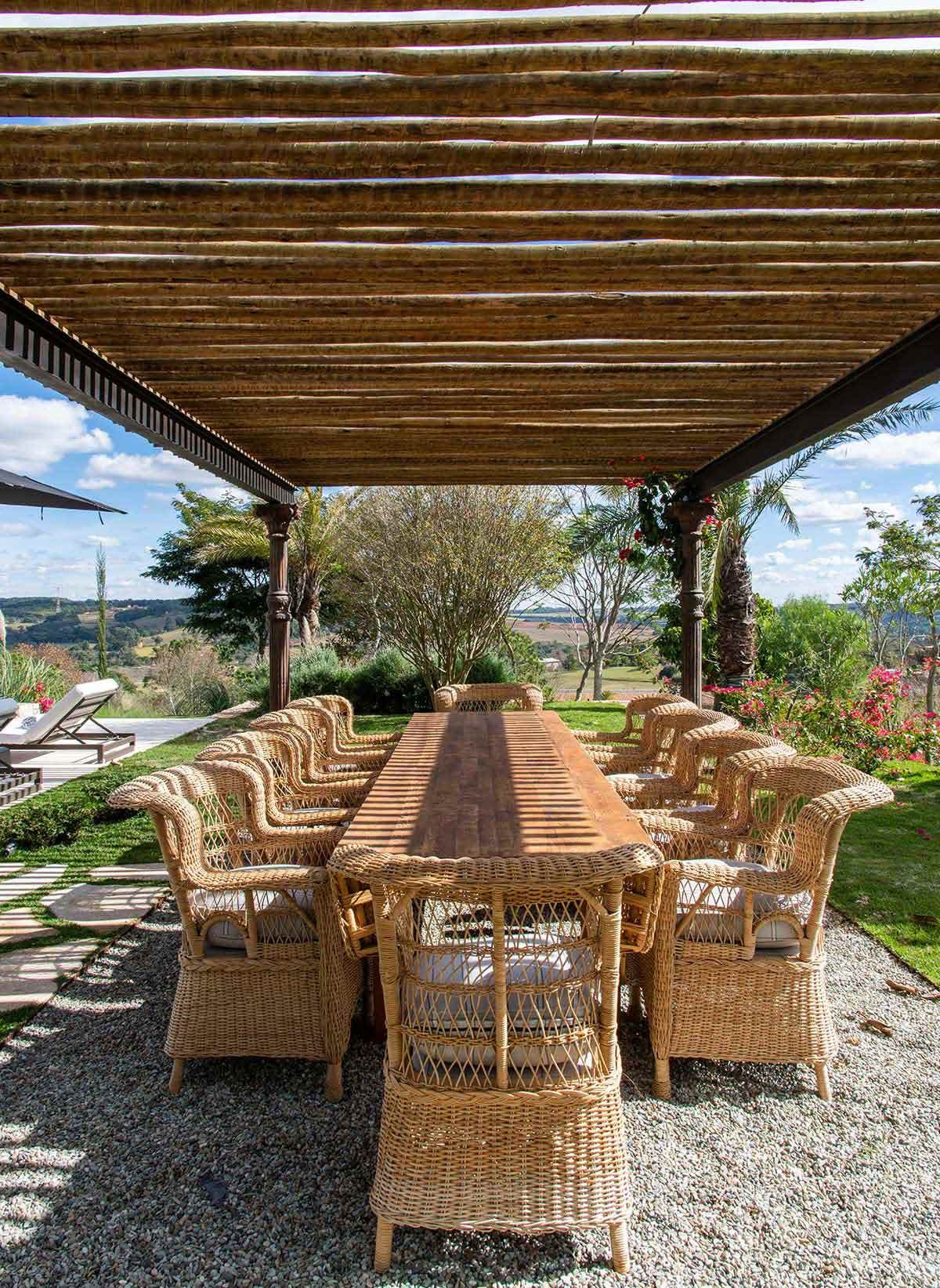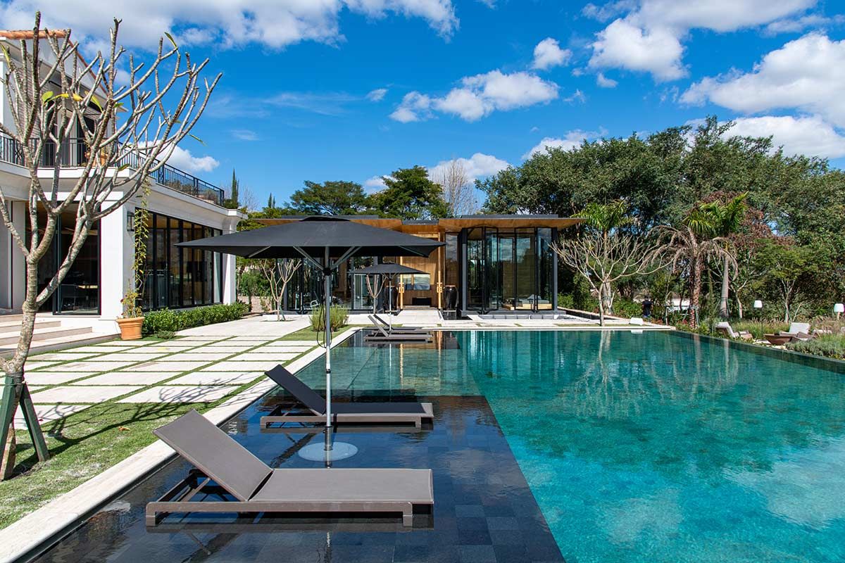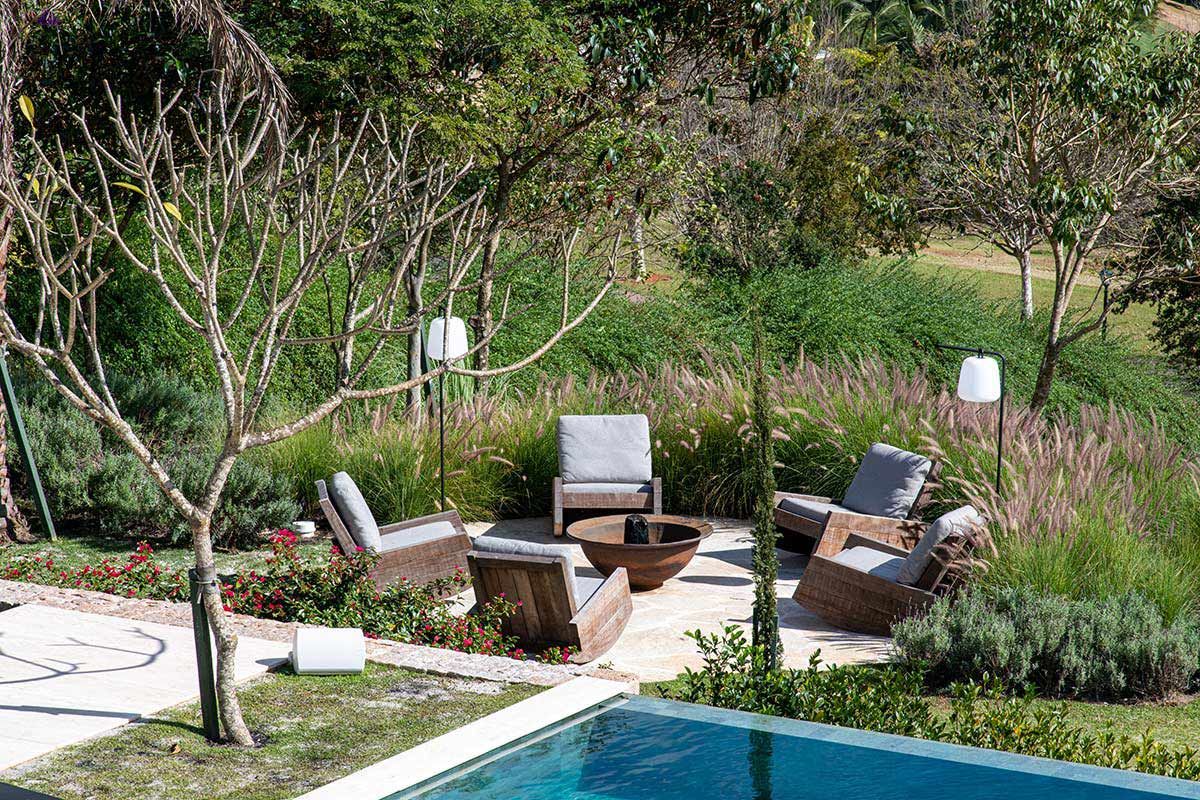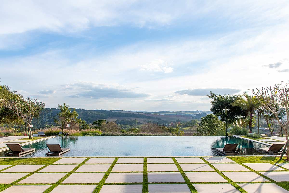 Em busca de um cenário que resgatasse as memórias da infância no campo, um jovem casal com filhos pequenos, encontrou em Bragança Paulista o lugar ideal para desfrutar aos finais de semana. Árvores, lareira, academia equipada, adega e um lugar para meditar e ler, eram alguns dos pedidos de cada integrante da família, mas havia um único desejo em comum: a grande área gourmet para receber, com piscina e integração com a natureza. Quem topou o desafio foi a Deborah Roig, arquiteta que assina este projeto: