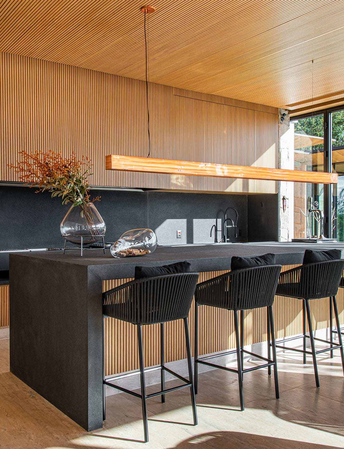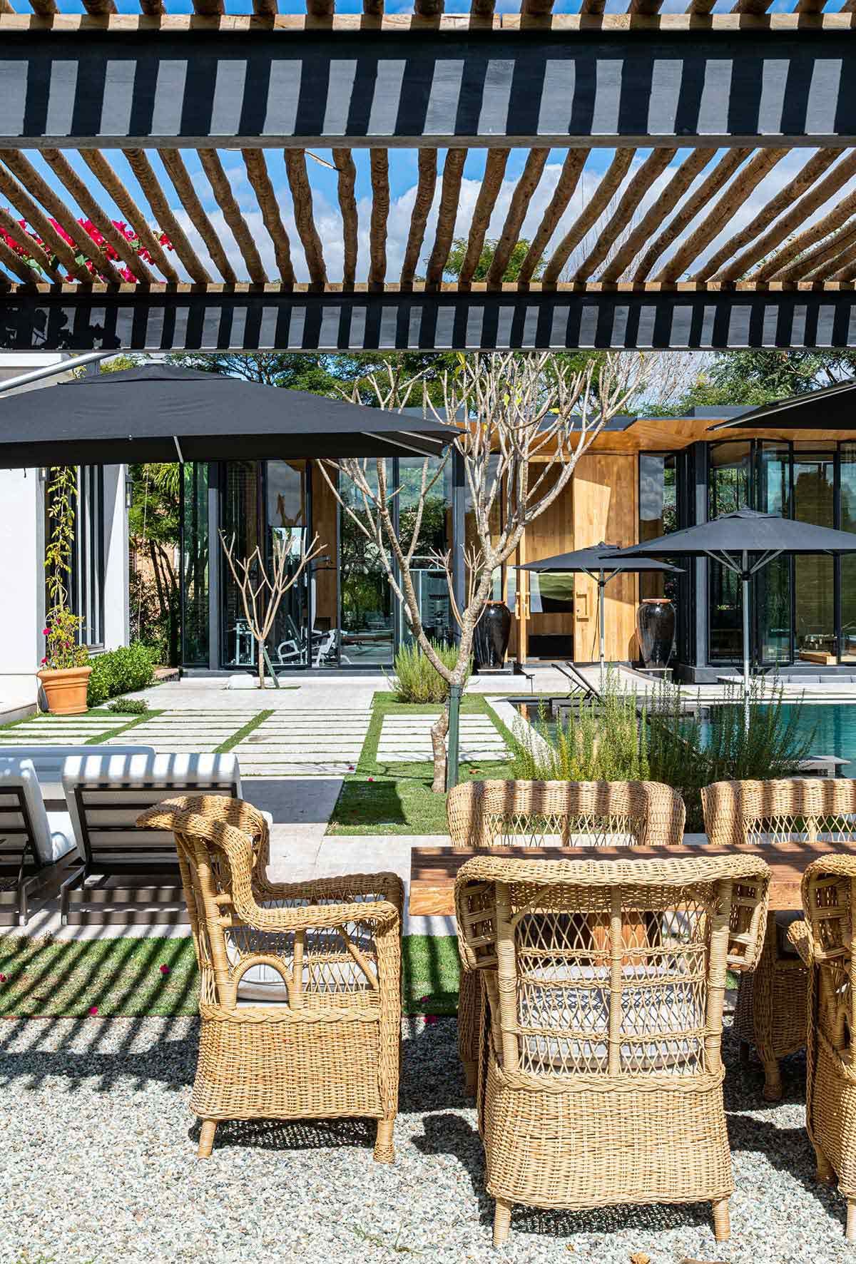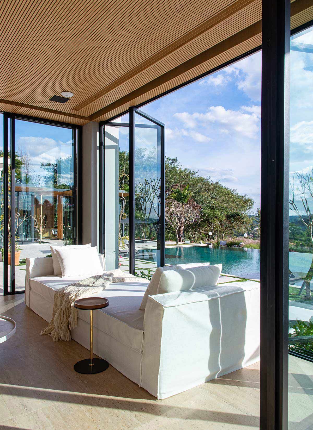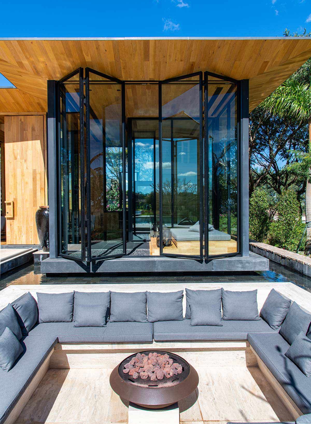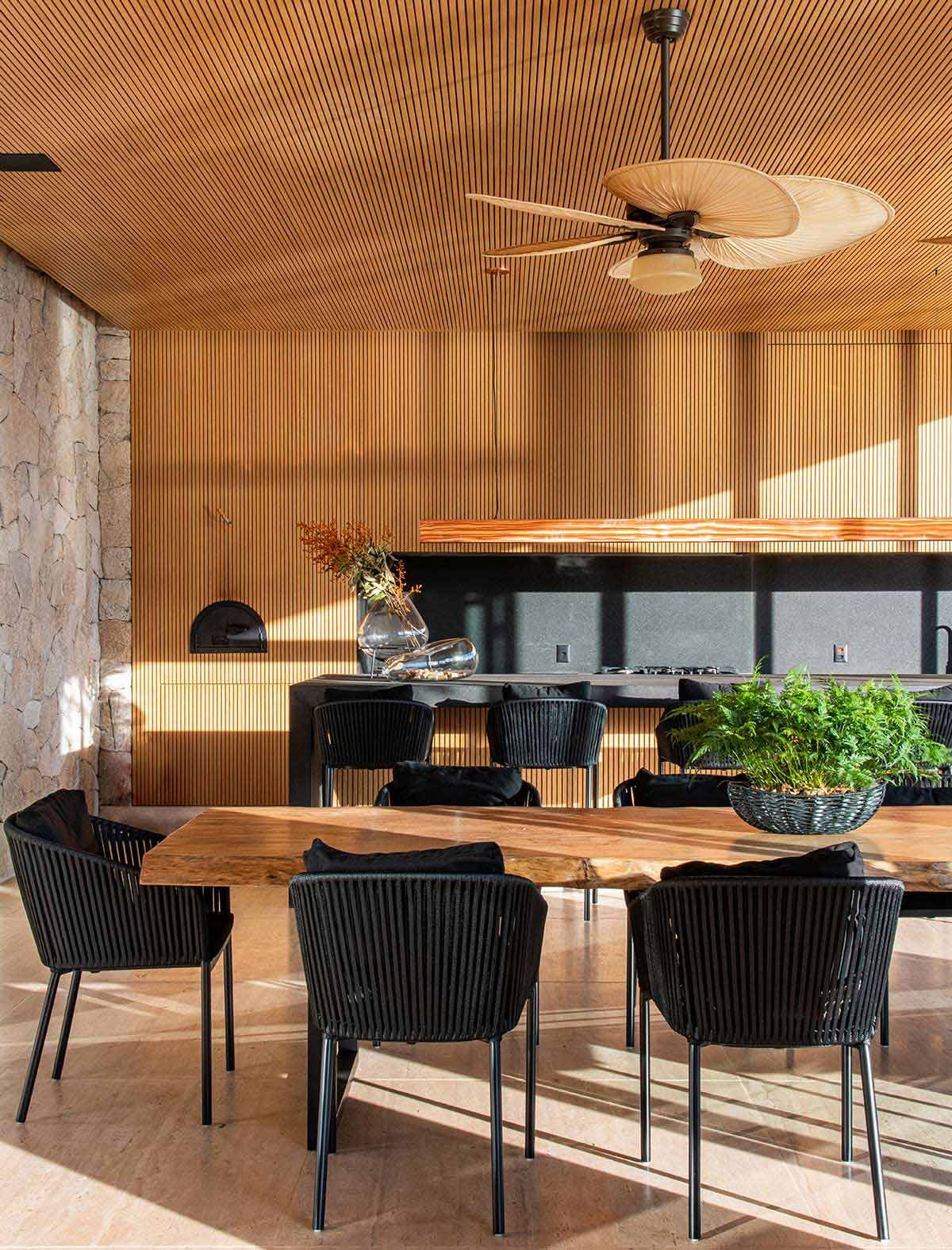 Em busca de um cenário que resgatasse as memórias da infância no campo, um jovem casal com filhos pequenos, encontrou em Bragança Paulista o lugar ideal para desfrutar aos finais de semana. Árvores, lareira, academia equipada, adega e um lugar para meditar e ler, eram alguns dos pedidos de cada integrante da família, mas havia um único desejo em comum: a grande área gourmet para receber, com piscina e integração com a natureza. Quem topou o desafio foi a Deborah Roig, arquiteta que assina este projeto: