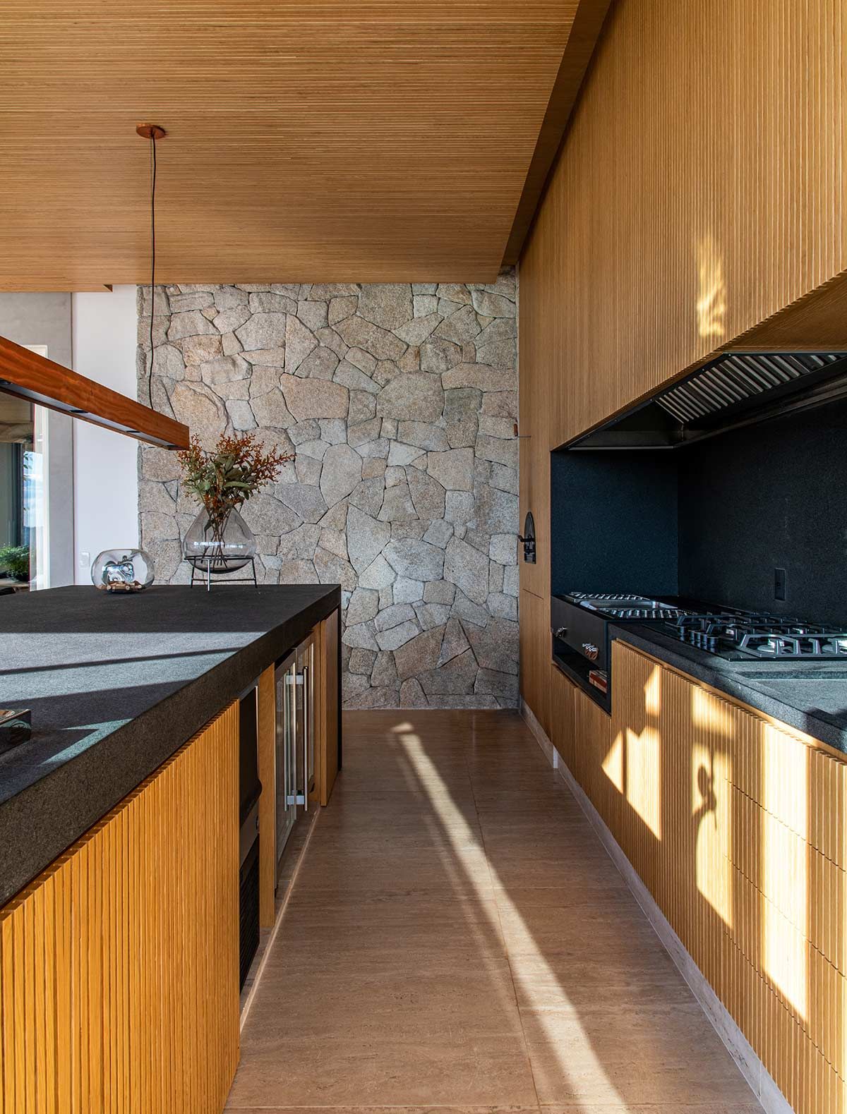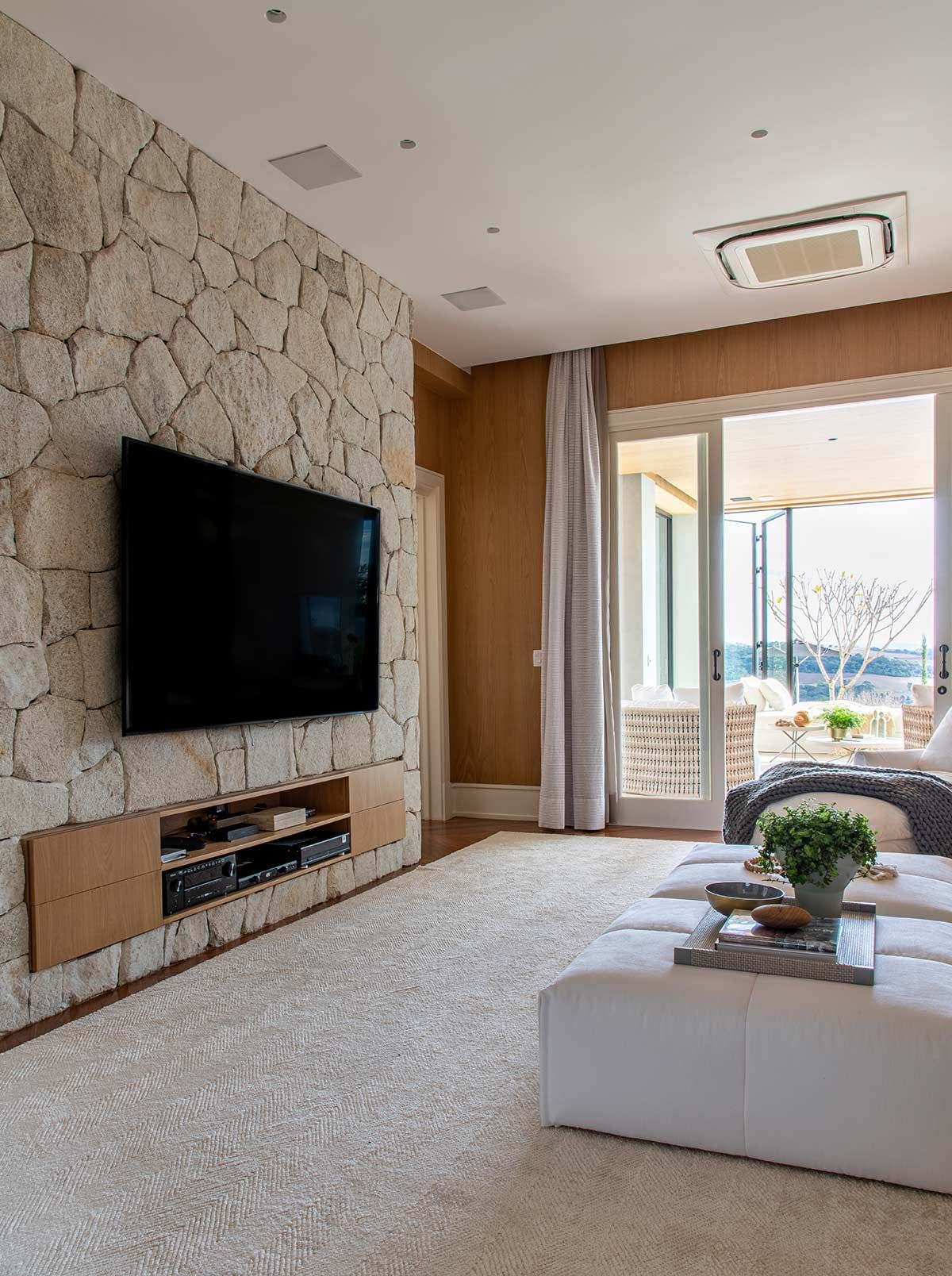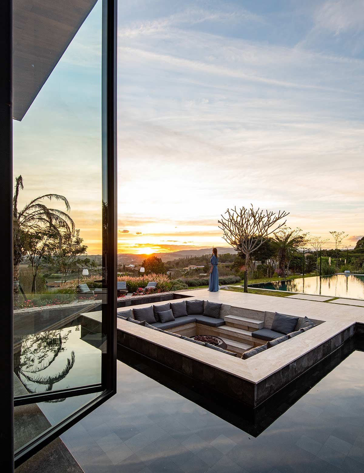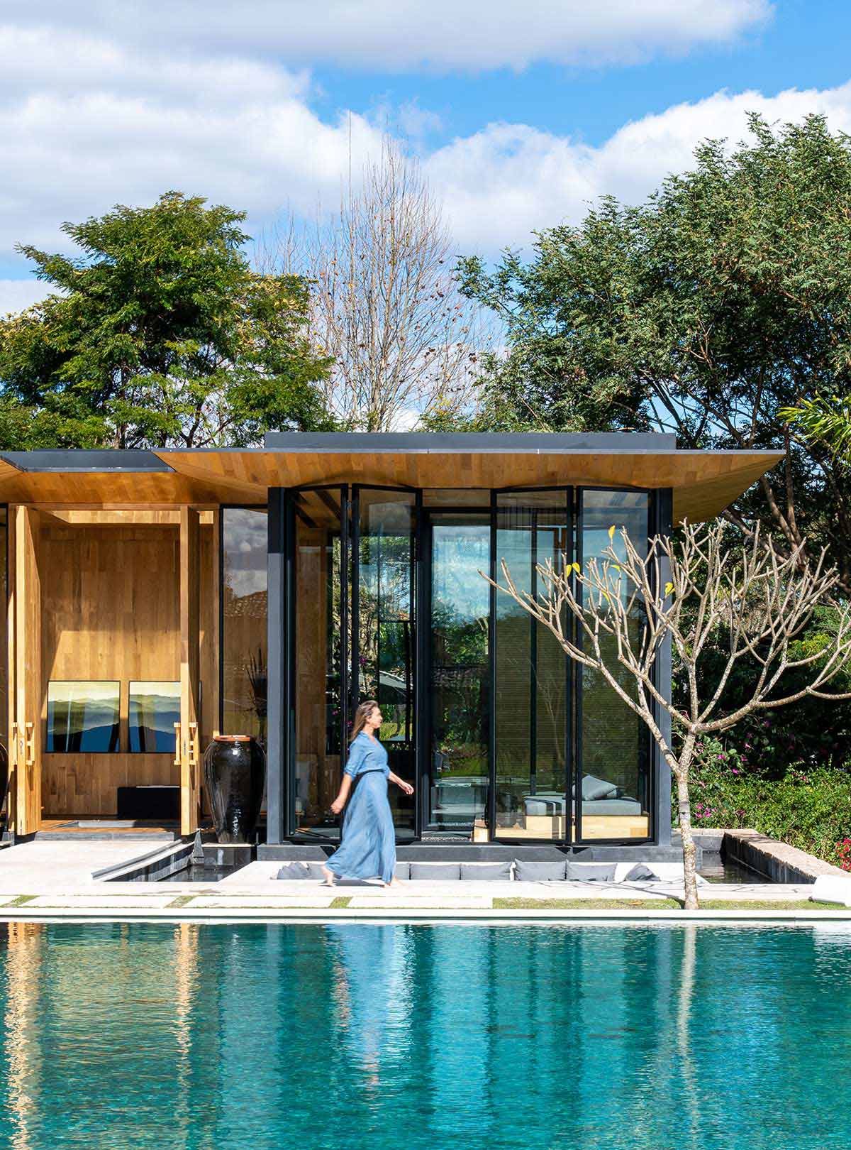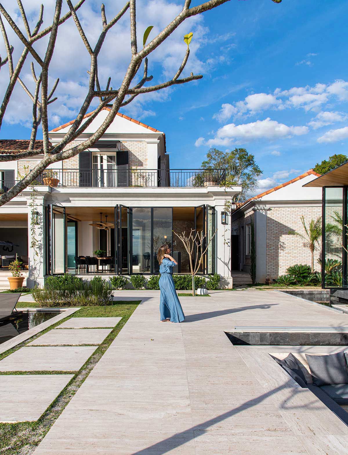 Em busca de um cenário que resgatasse as memórias da infância no campo, um jovem casal com filhos pequenos, encontrou em Bragança Paulista o lugar ideal para desfrutar aos finais de semana. Árvores, lareira, academia equipada, adega e um lugar para meditar e ler, eram alguns dos pedidos de cada integrante da família, mas havia um único desejo em comum: a grande área gourmet para receber, com piscina e integração com a natureza. Quem topou o desafio foi a Deborah Roig, arquiteta que assina este projeto: