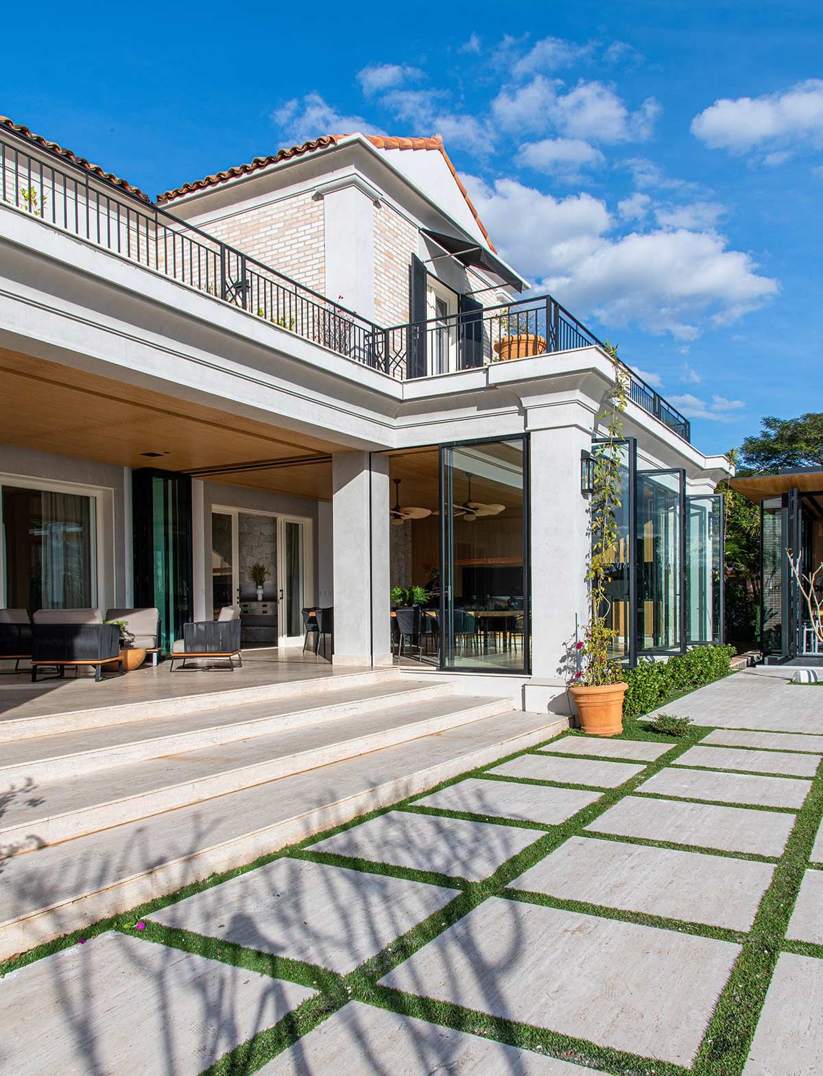 Os clientes ansiavam por um imóvel mais atual e amplo para receberem os amigos e familiares. Originalmente de estilo Toscano, as varandas, área externa e a fachada foram completamente repaginadas, para que a casa ficasse aconchegante para eles.