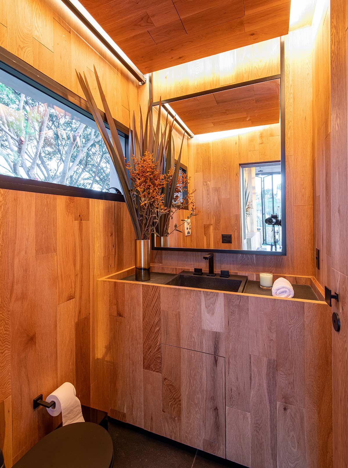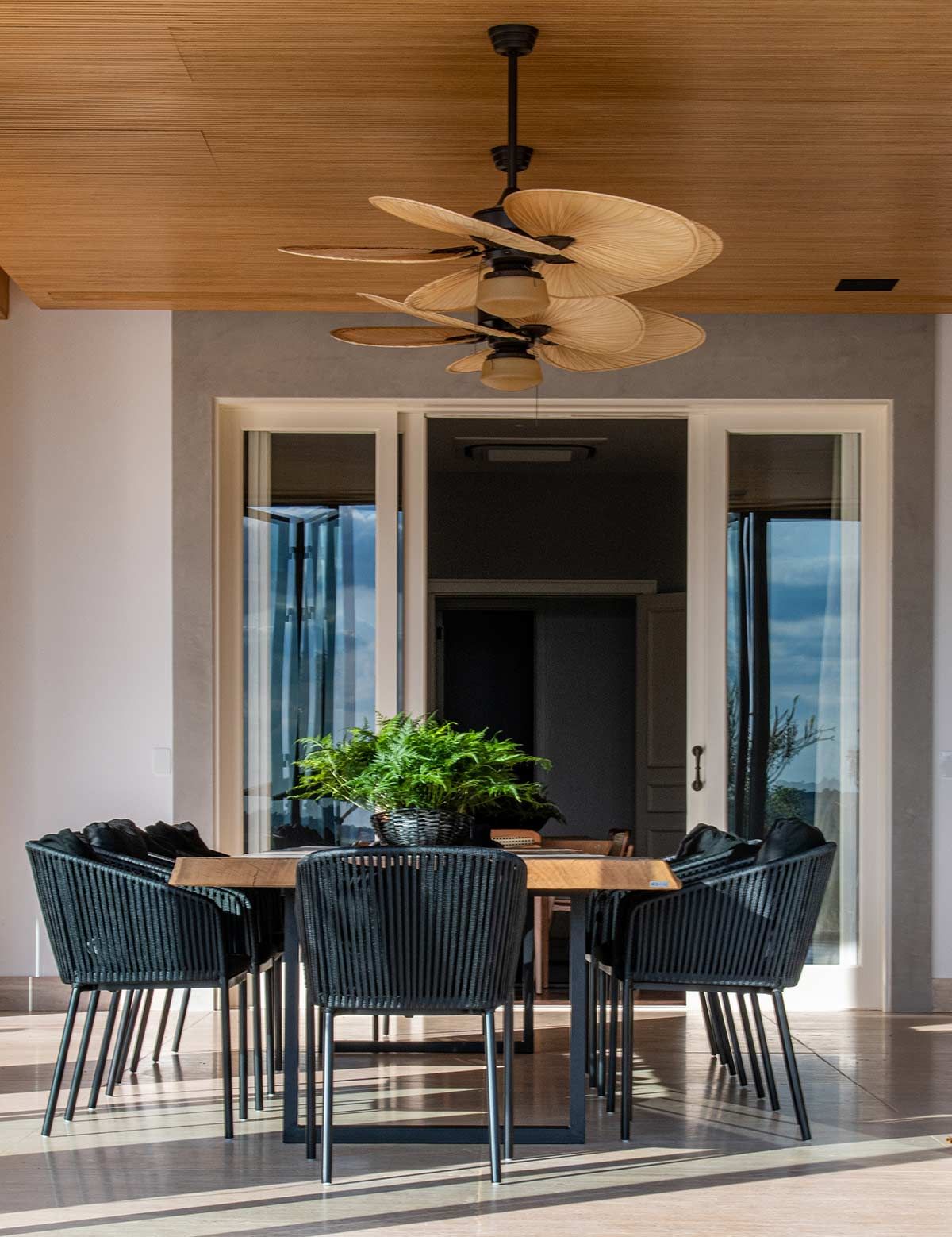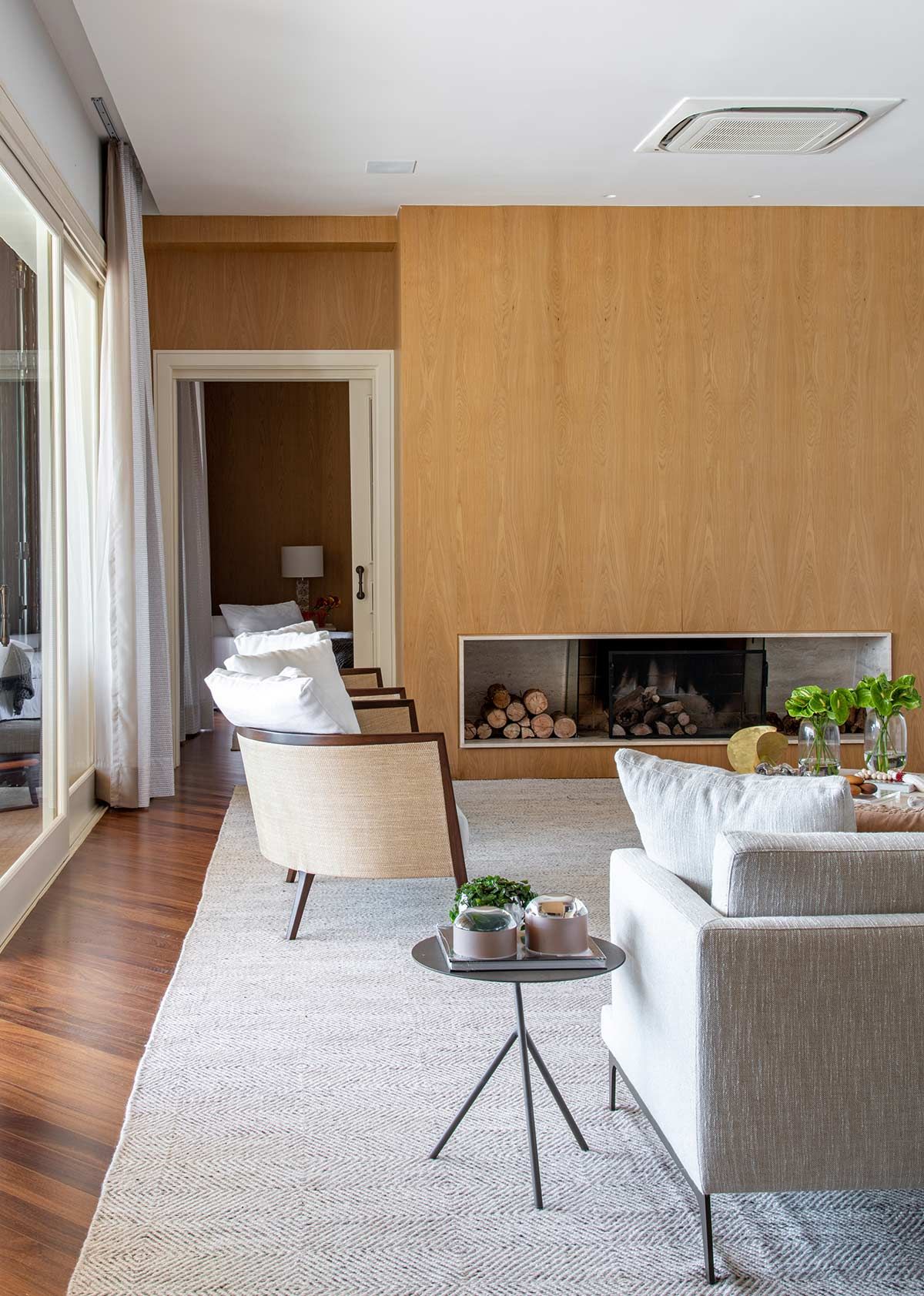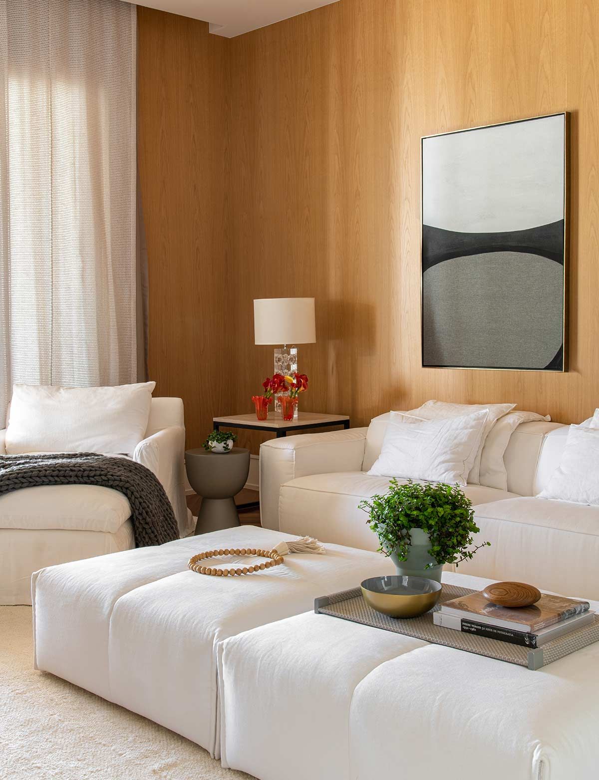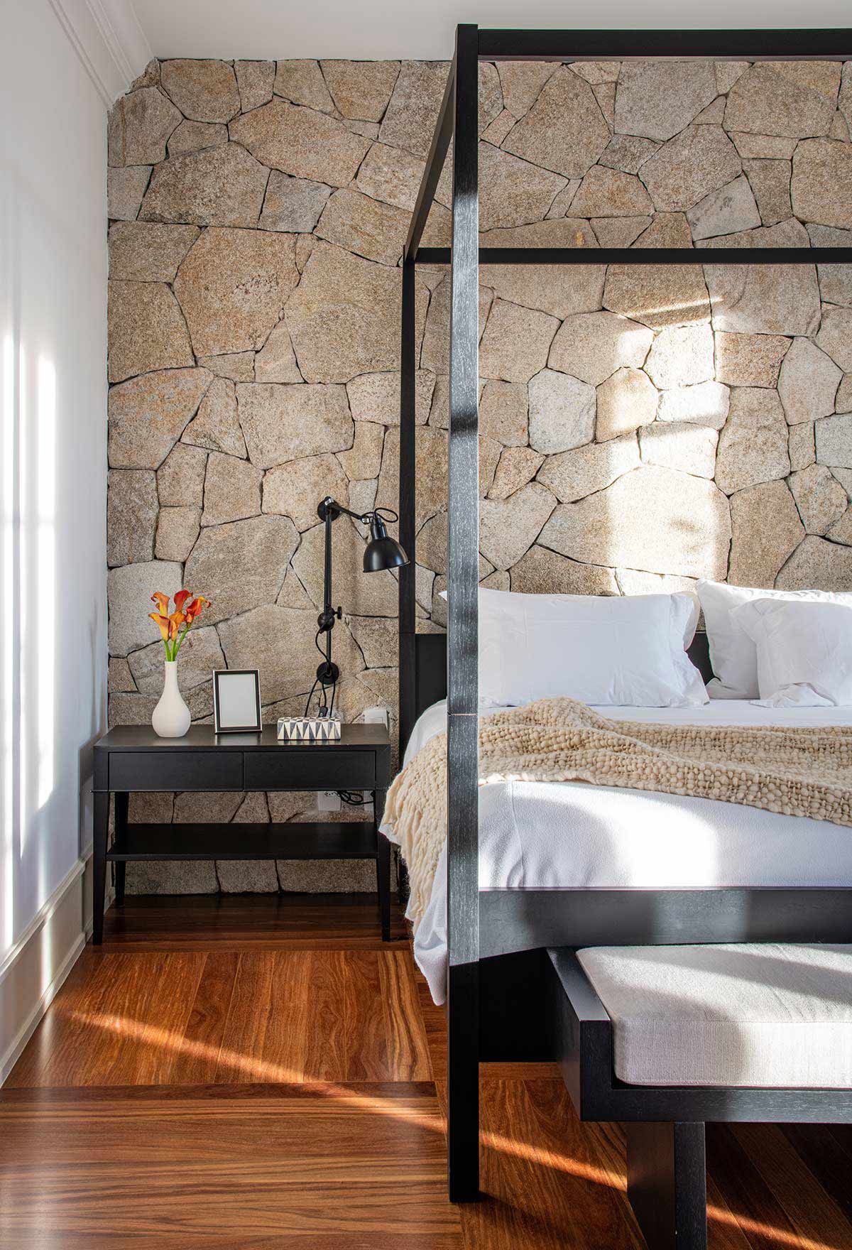 As setes suítes, sala da lareira, TV e jantar foram os únicos espaços estruturalmente mantidos, mas com nova decoração. Em meio a paleta neutra que permeia o branco, cinza e preto, as texturas ressaltam os elementos naturais, agregando conforto aos cômodos e transformando a morada em um lugar de pausa e relaxamento.