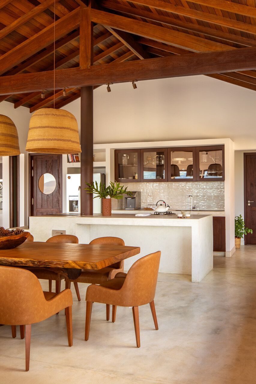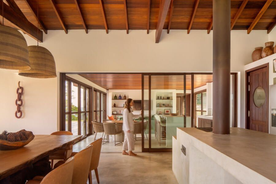 O pedido dos clientes era claro: criar interiores calorosos, funcionais e enraizados na cultura local. Num lugar onde o clima muda sem avisar e o acesso exige escolhas práticas, cada solução precisou ser inteligente e gentil com o cotidiano da família. A equipe decidiu então transformar os desafios em direção, com distância dos centros urbanos, mão de obra local e materiais disponíveis na região, e fez disso o motor criativo do projeto.