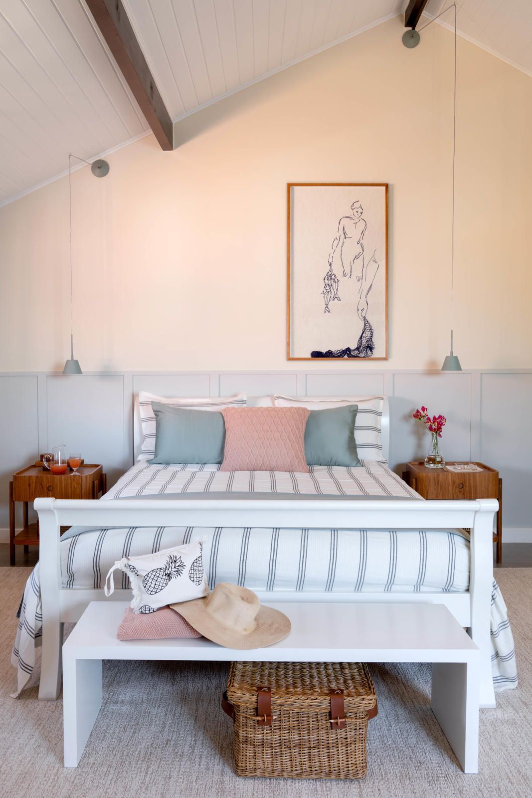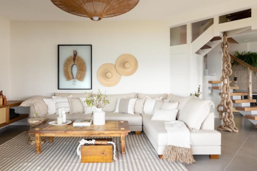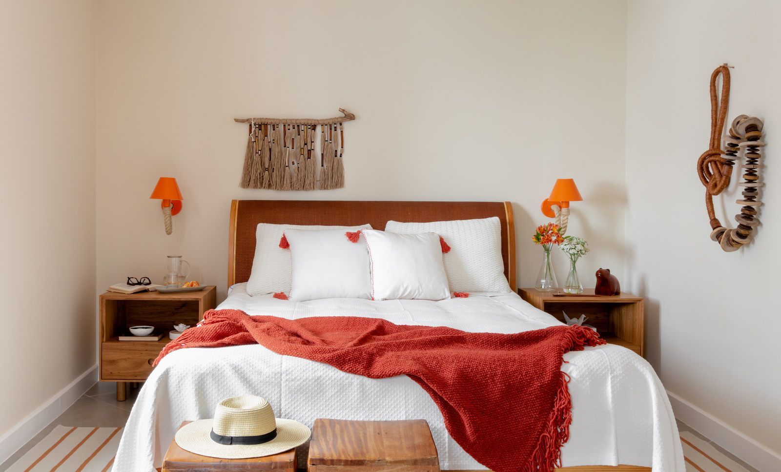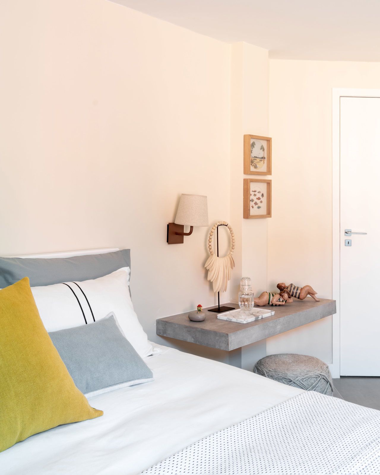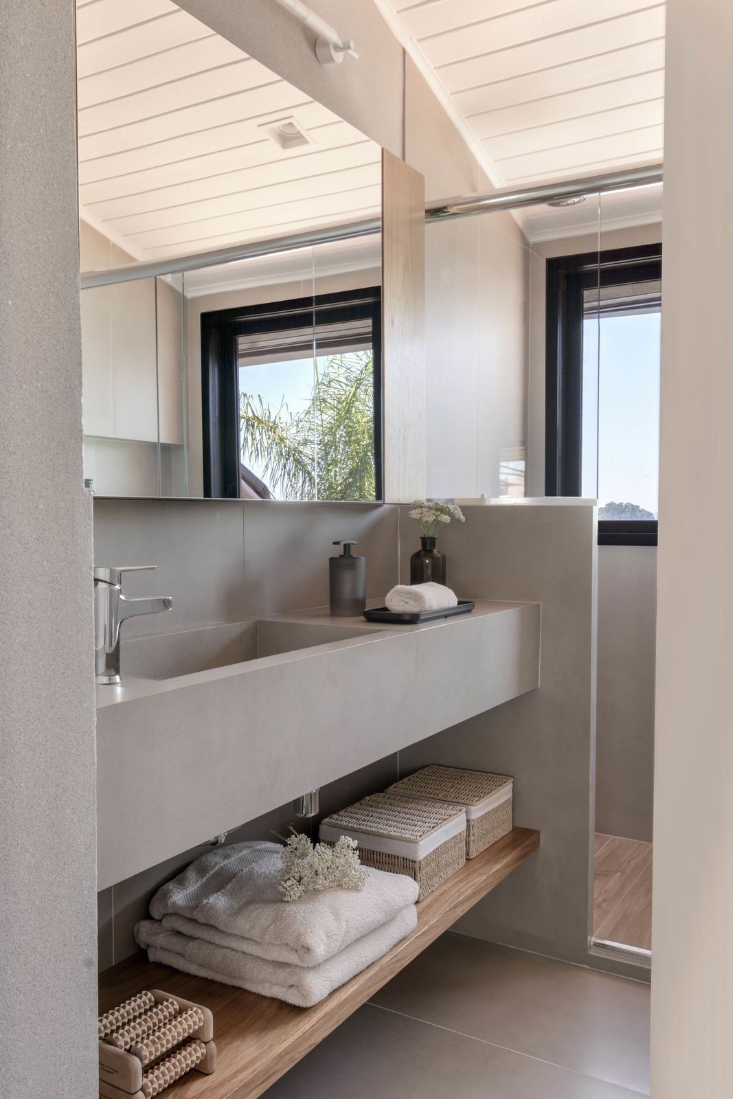 “O objetivo foi proporcionar fluidez, refletida na decoração com cores da natureza, como os verdes, crus e caramelos mais quentes, que evocam a sensação de tranquilidade, prazer e relaxamento. O quarto do casal recebeu amplos panos de vidro e todas as esquadrias originais frontais foram reorganizadas, de forma que fosse possível contemplar o visual do mar. É uma casa generosa, que realmente parece fazer um carinho em quem lhe confia seu tempo precioso para esquecer o mundo lá fora.”