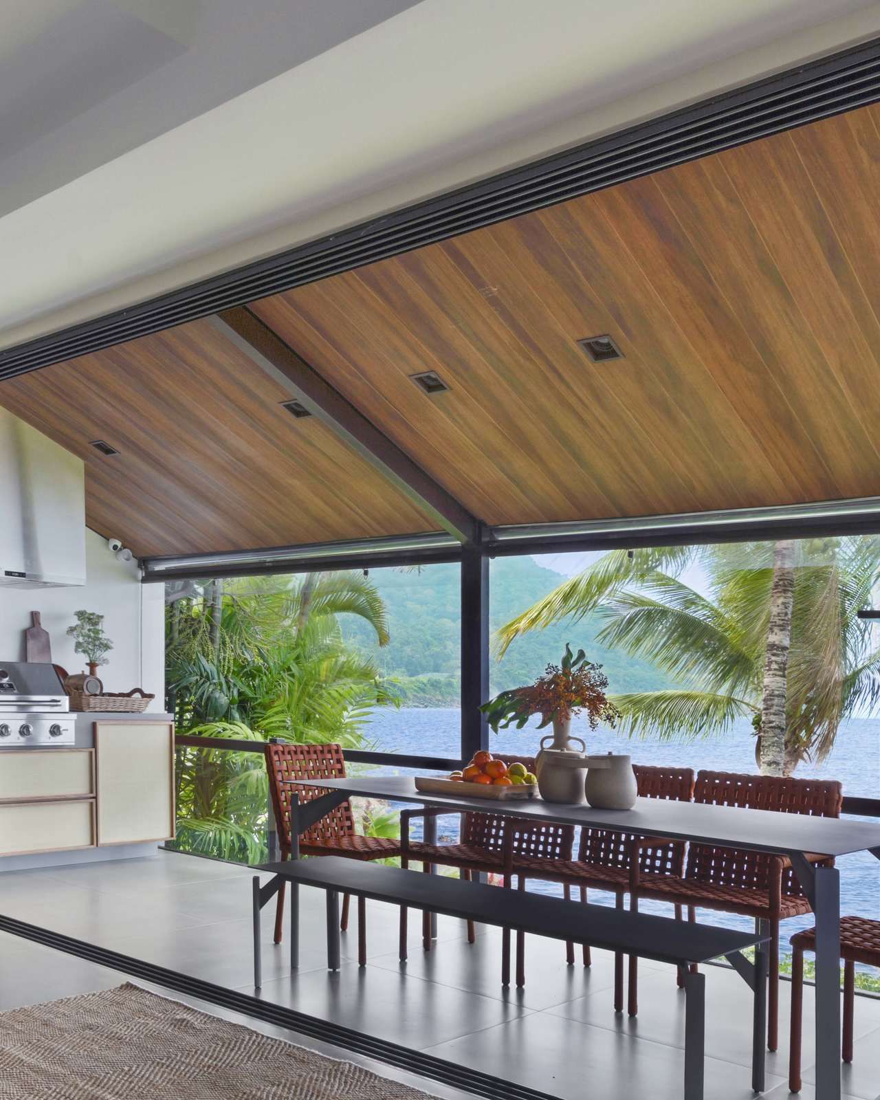 Uma casa de frente para o mar com charme caiçara. Essa era a ideia de um casal com duas filhas jovens para a casa de veraneio da família em Angra dos Reis, Rio de Janeiro, com projeto assinado pela designer de interiores Roberta Devisate.