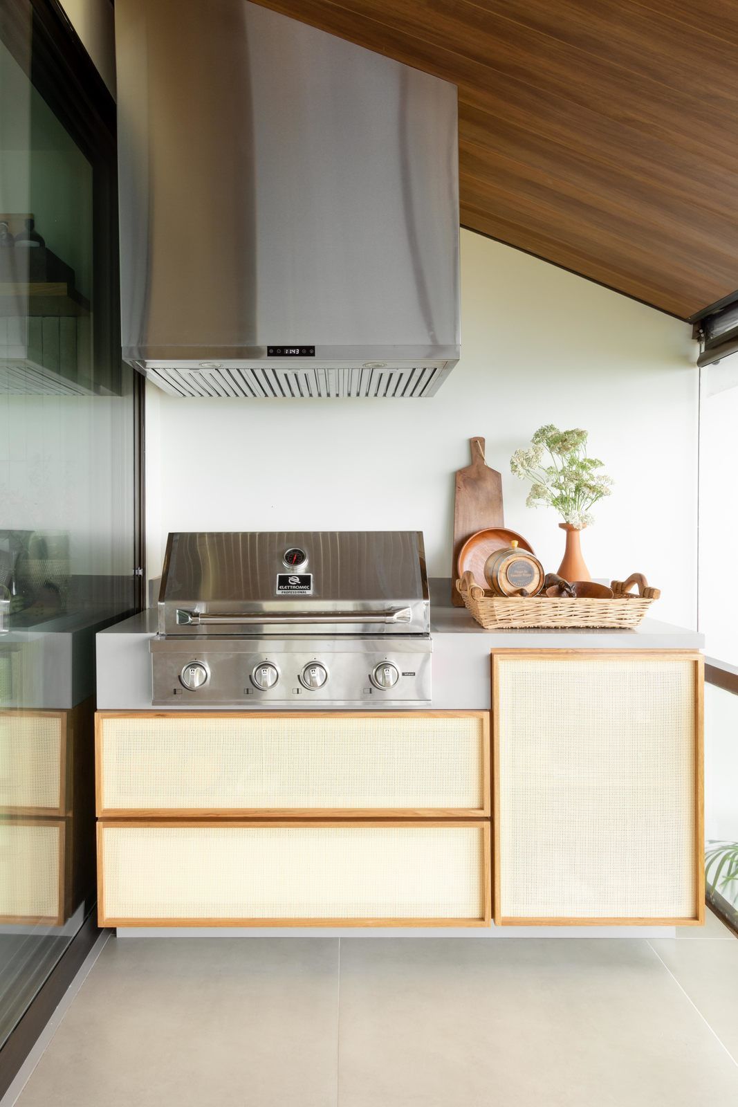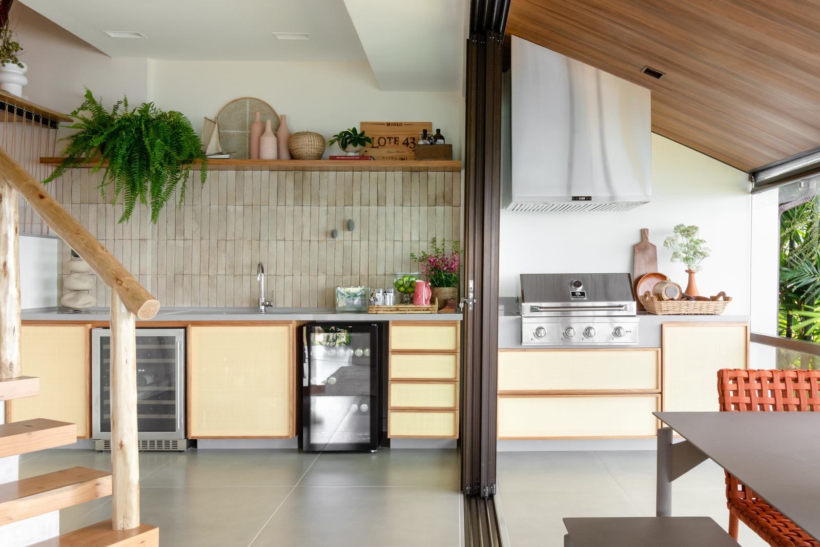 “Nos estudos iniciais do projeto, percebi um importante potencial do setor social que não poderia ser negligenciado. A proposta de criar uma cozinha gourmet completamente integrada – contemplando varanda, jantar, cozinha funcional e sala de estar – foi prontamente aceita com entusiasmo e o resultado surpreendeu pela beleza e praticidade!”