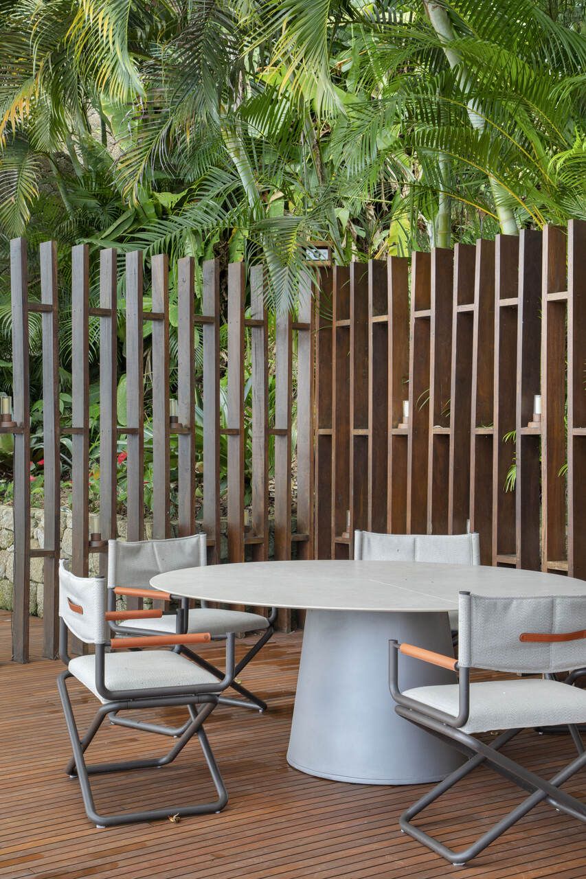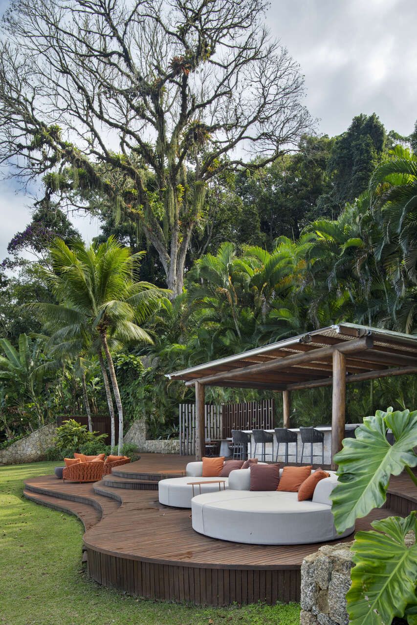 “O maior desafio foi projetar o Lounge Gourmet de forma a integrá-lo à natureza e à casa principal. Para isso, criamos uma estrutura suspensa, permeável e com formas orgânicas, que reduzisse o impacto no terreno e preservasse a vegetação nativa. O projeto foi executado sem uso de concreto, garantindo uma construção reversível e em harmonia com o ecossistema local.”