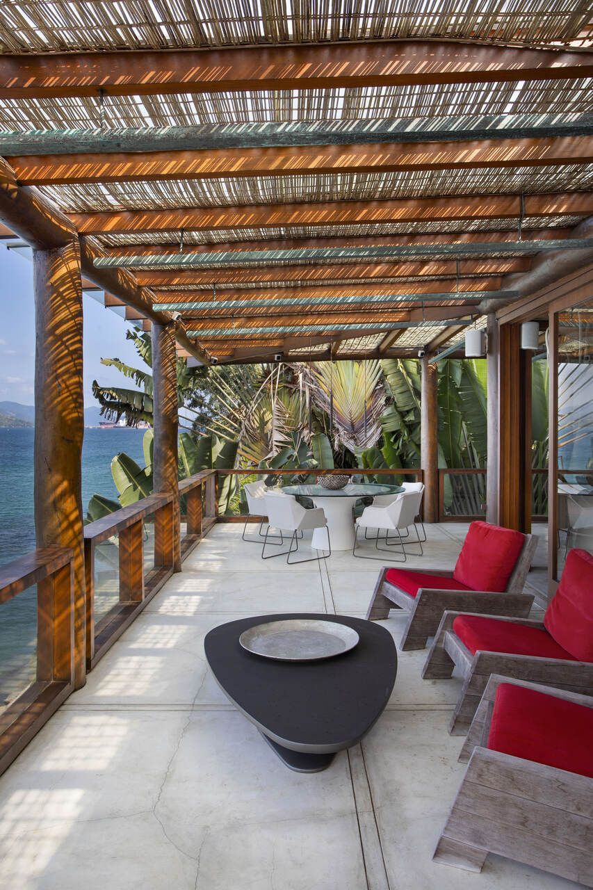 “A essência da arquitetura original foi preservada. Mantivemos a cor vermelha da casa e o seu estilo praiano, que continua sendo uma marca muito forte do projeto.”