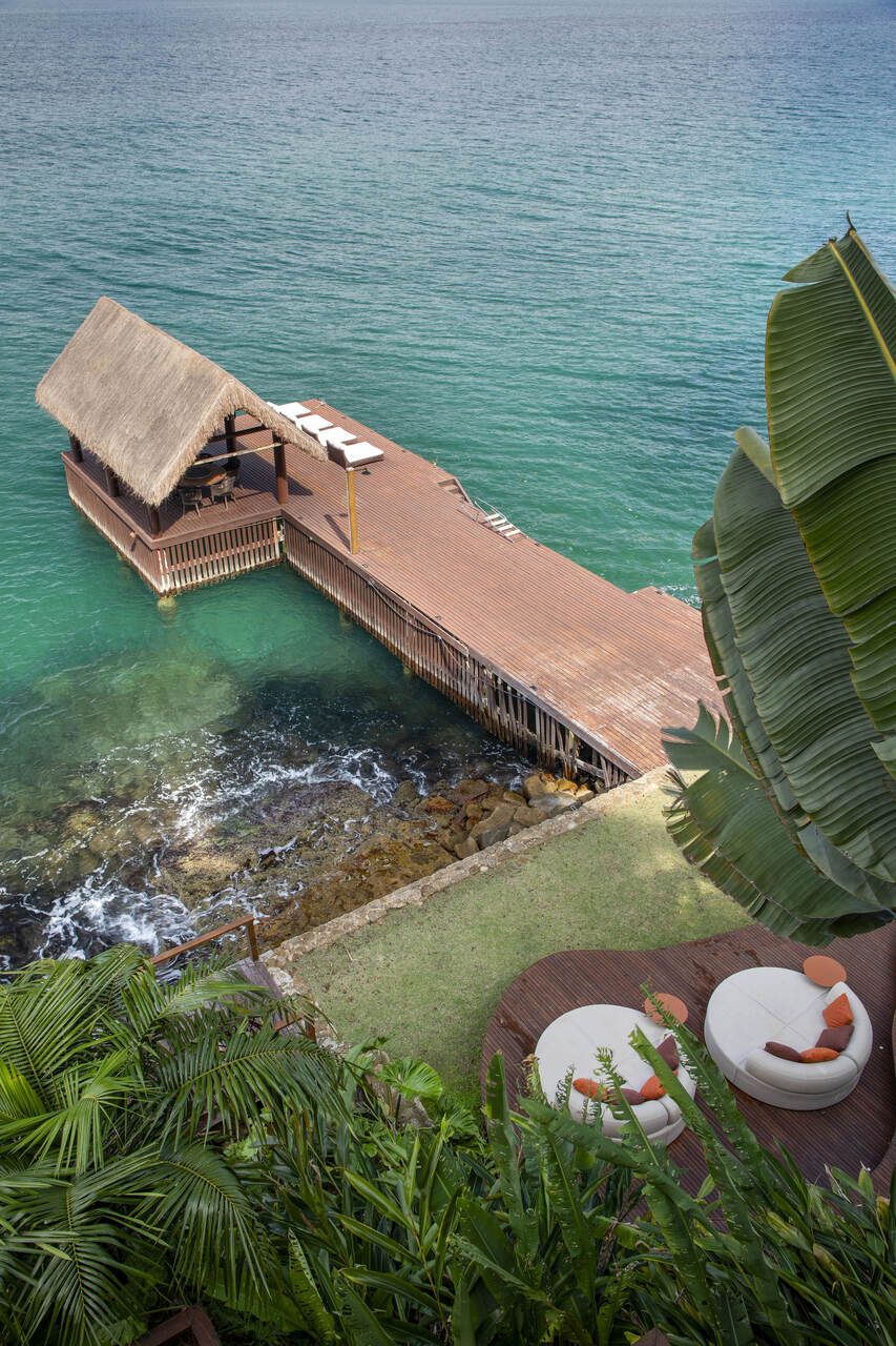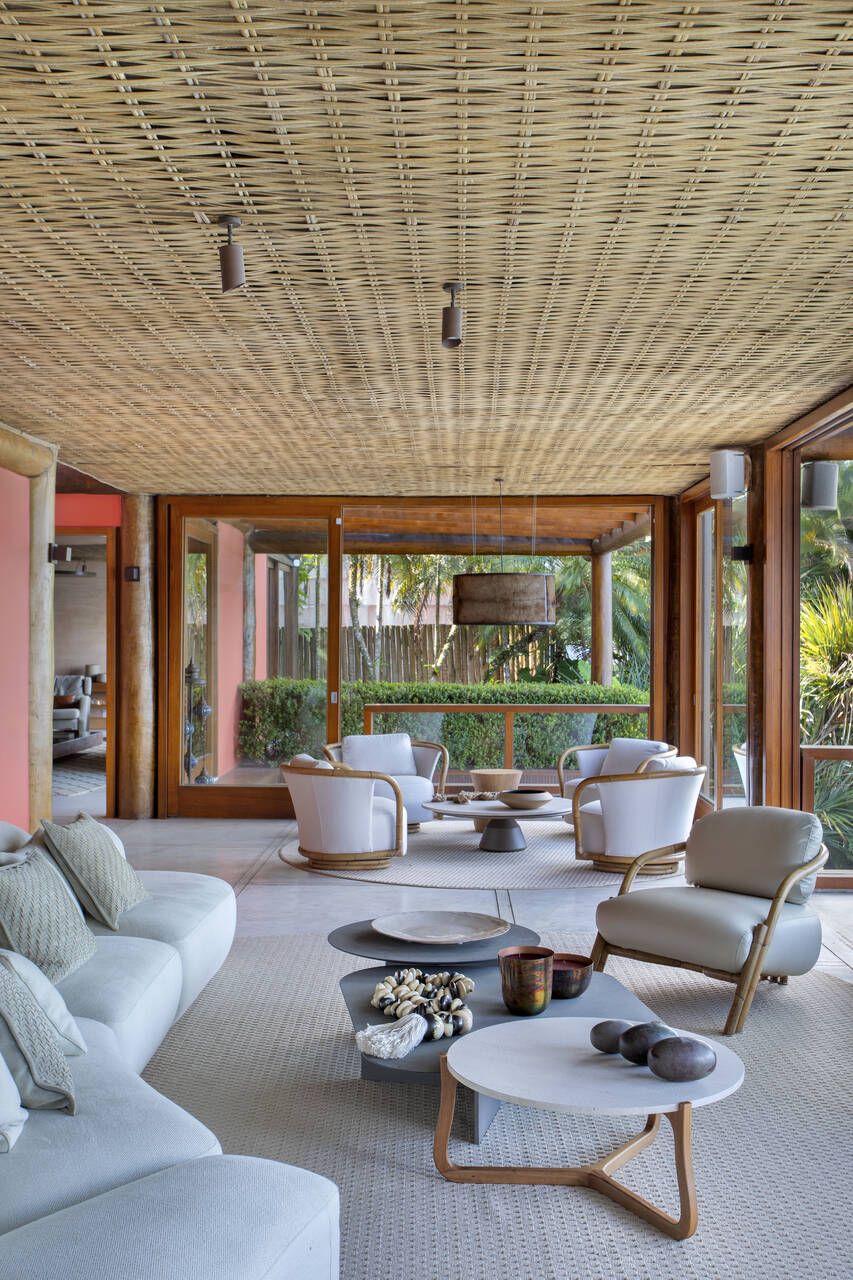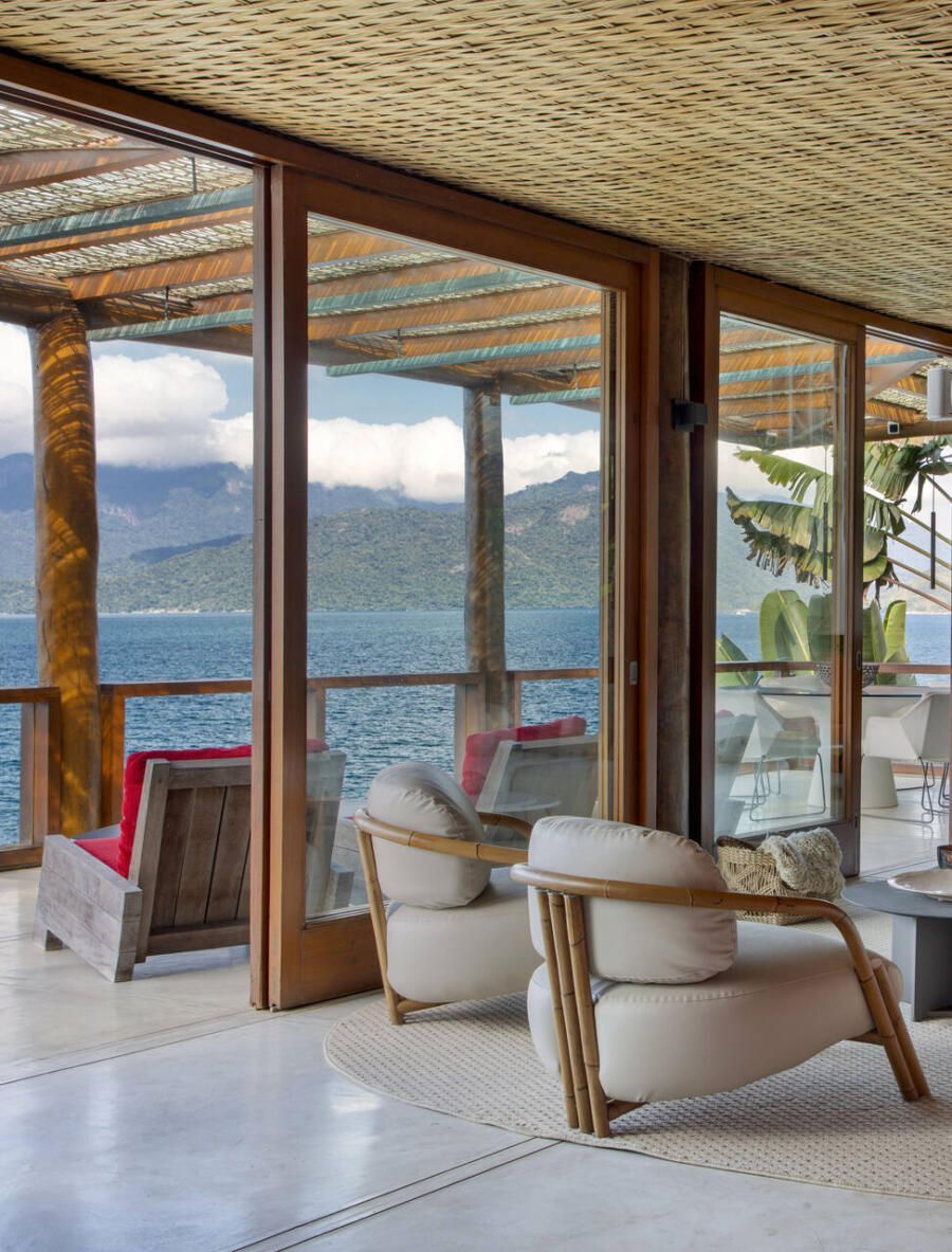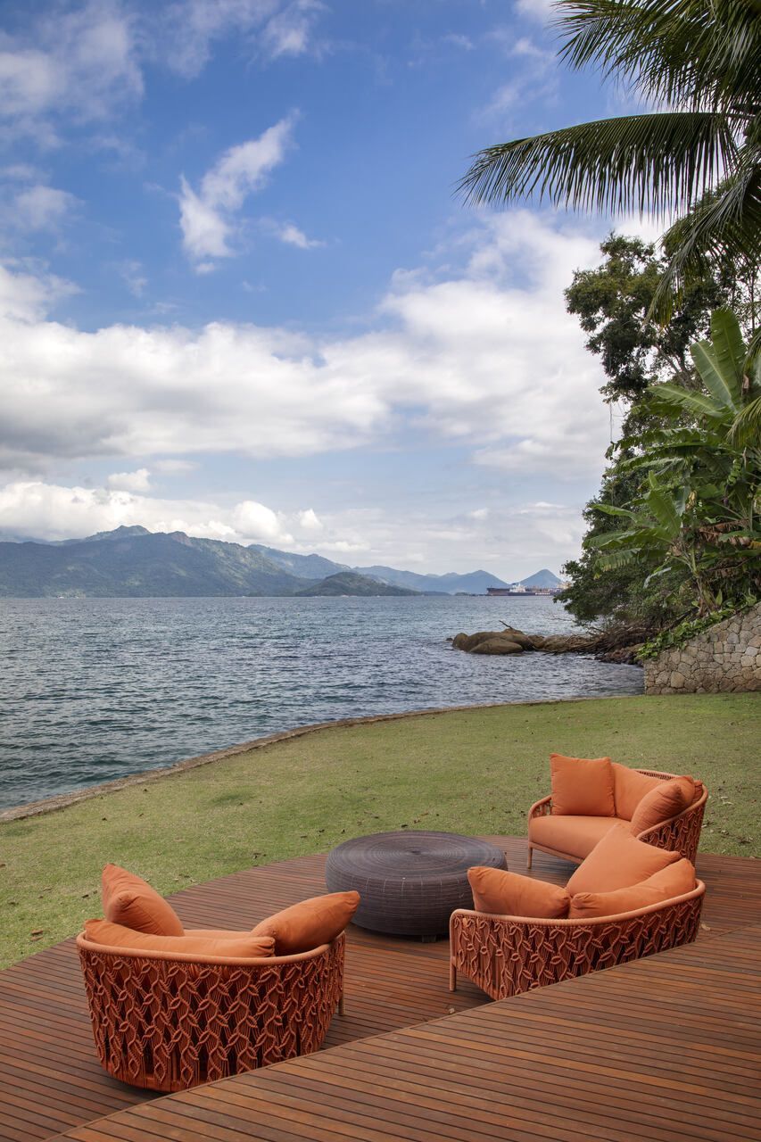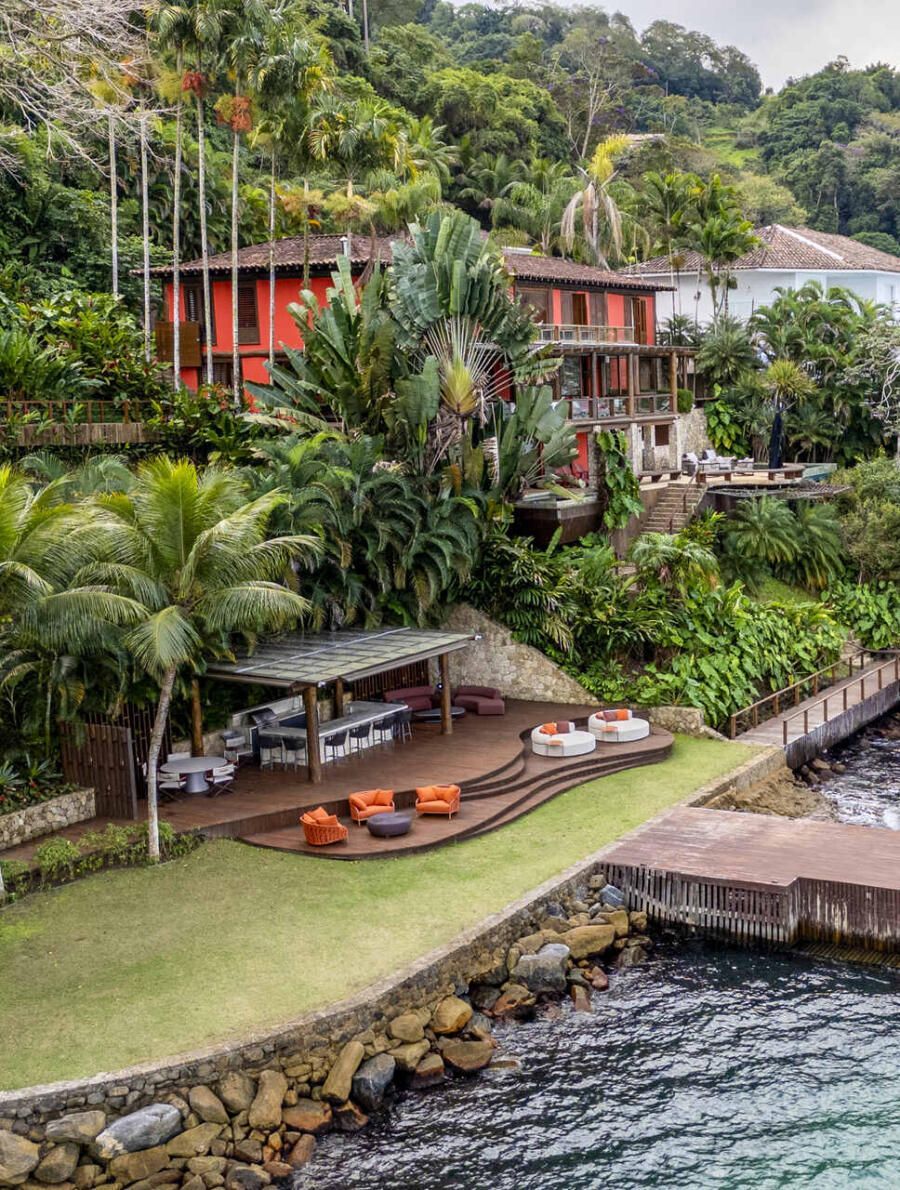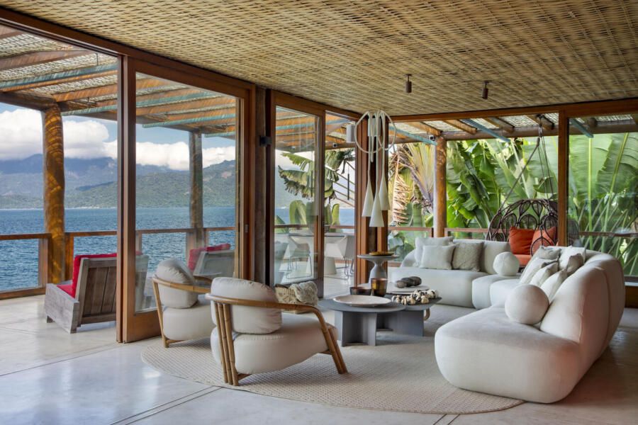 Assinada pela arquiteta Mônica Gervásio, esta casa de praia em Angra dos Reis, na Costa Verde fluminense, revela uma arquitetura que se descortina aos poucos, em sintonia com a paisagem exuberante ao redor. Implantada em um terreno de cerca de 10.000m² e com aproximadamente 850m² de área construída, a residência, originalmente projetada pelo arquiteto Cadas Abrantes, passou por uma nova etapa de reforma e decoração que atualizou seus interiores sem alterar a essência praiana que sempre definiu o projeto.