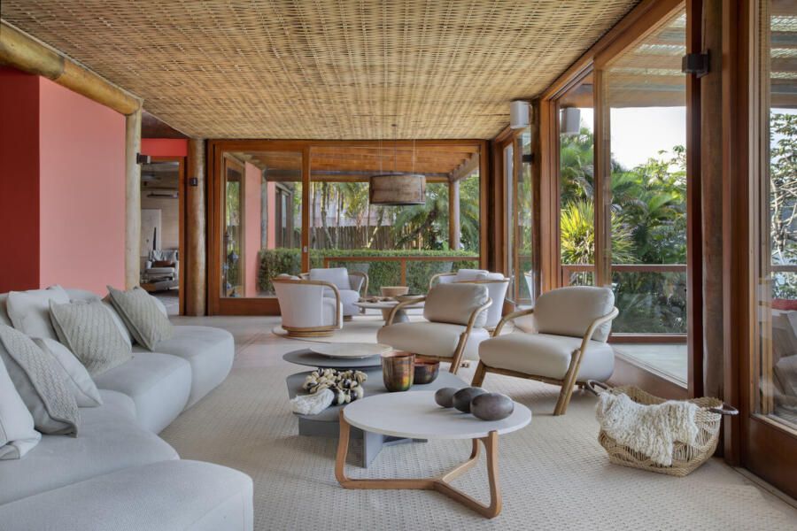 O conceito geral aposta no conforto e na conexão com a natureza. Materiais naturais, tecidos leves, texturas orgânicas e cores acolhedoras definem a atmosfera dos interiores. Varandas ganham poltronas, balanços e almofadas macias para tardes sem pressa, enquanto a iluminação indireta, os objetos artesanais e as folhagens tropicais completam a experiência sensorial de uma verdadeira casa de praia no estilo “Coastal Chic”.