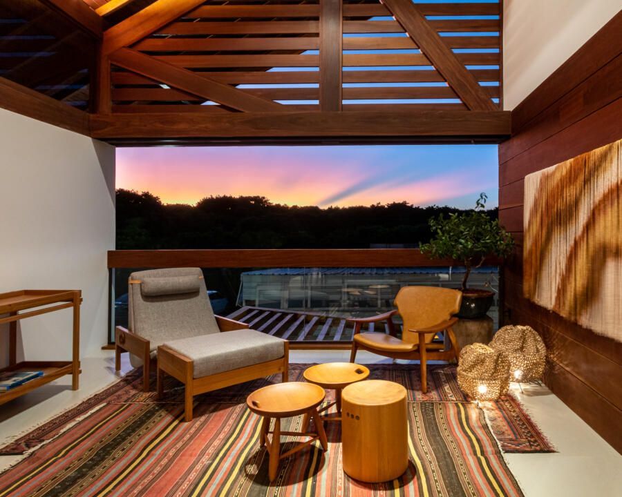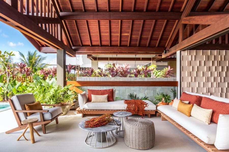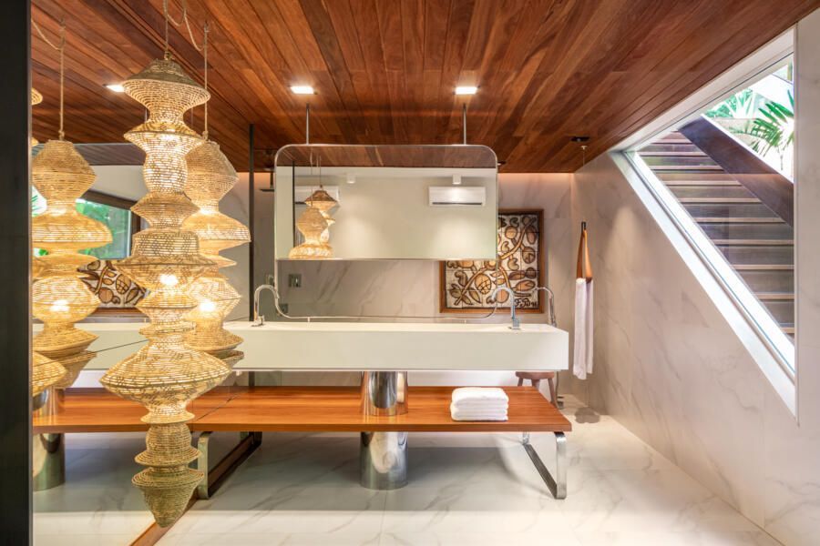 “O conceito foi conduzido de forma a manter a excelência na qualidade dos materiais e mobiliários elencados, sem perder, ao mesmo tempo, a essência de uma casa de praia: resguardando a proposta de um lugar despojado e com aspecto simples, que remete ao descanso e à descontração.”