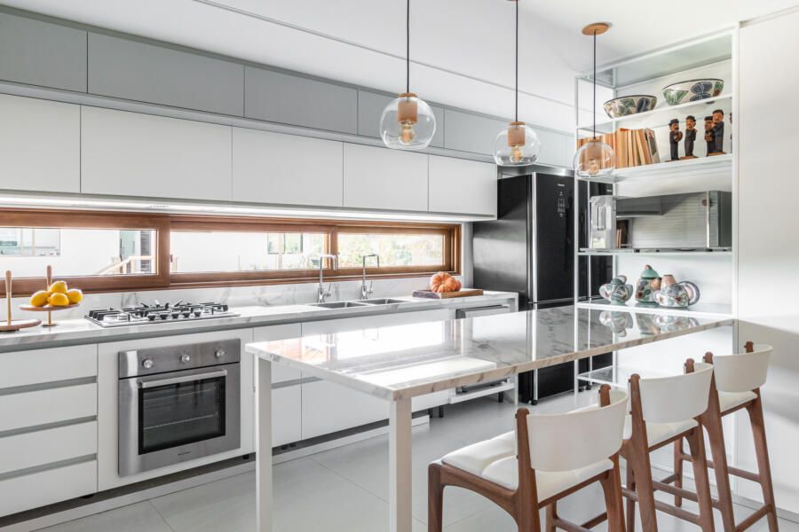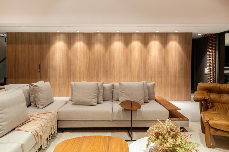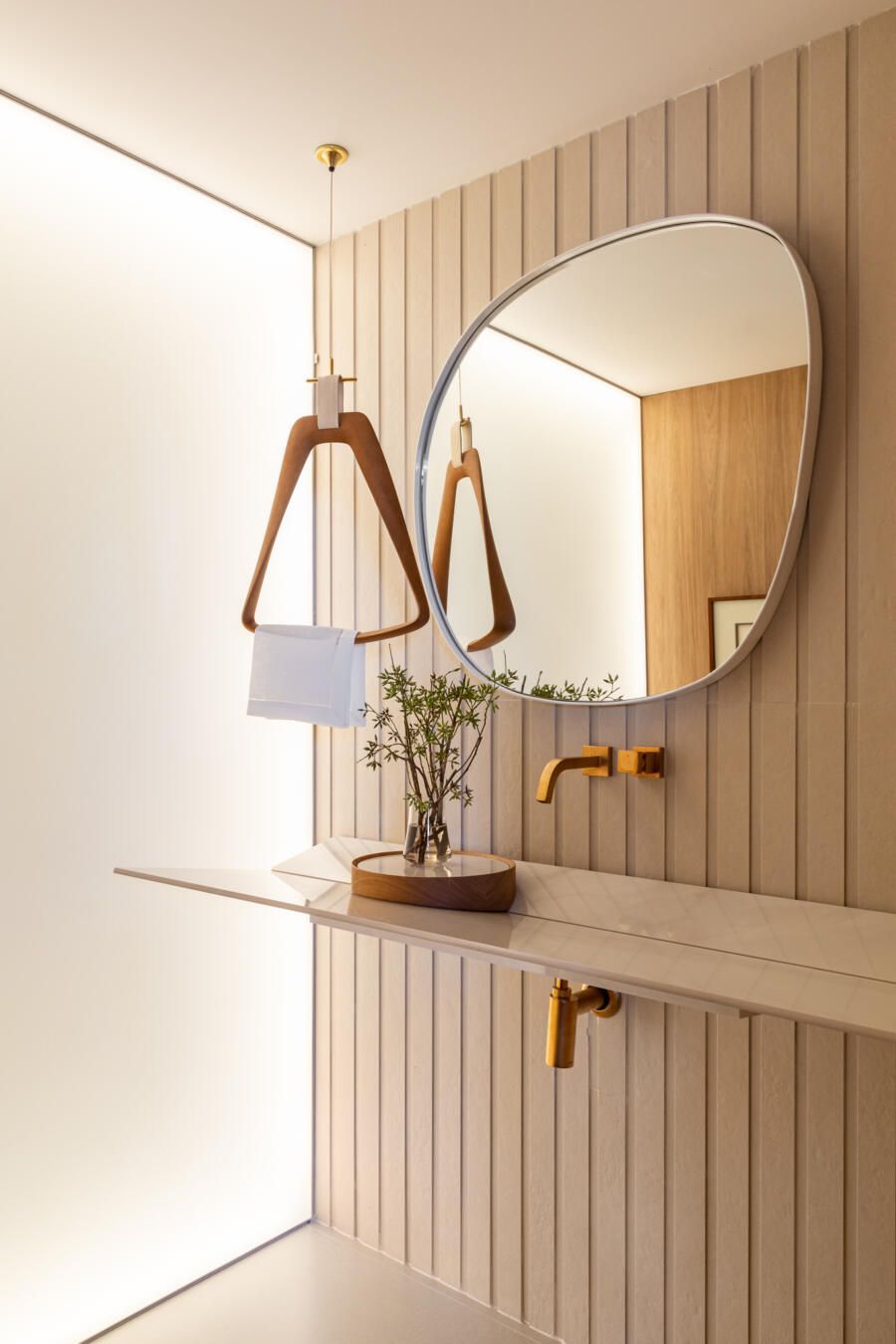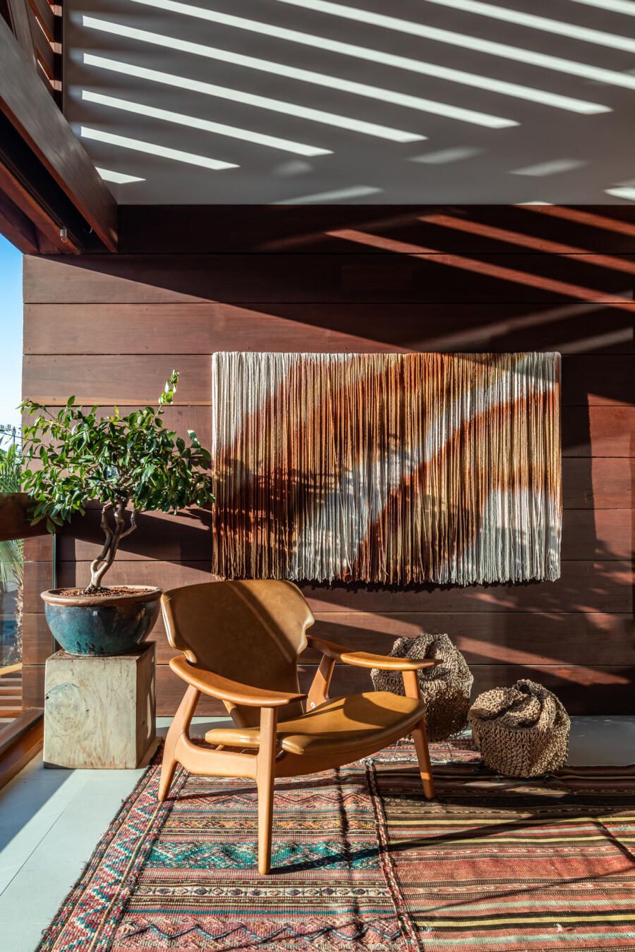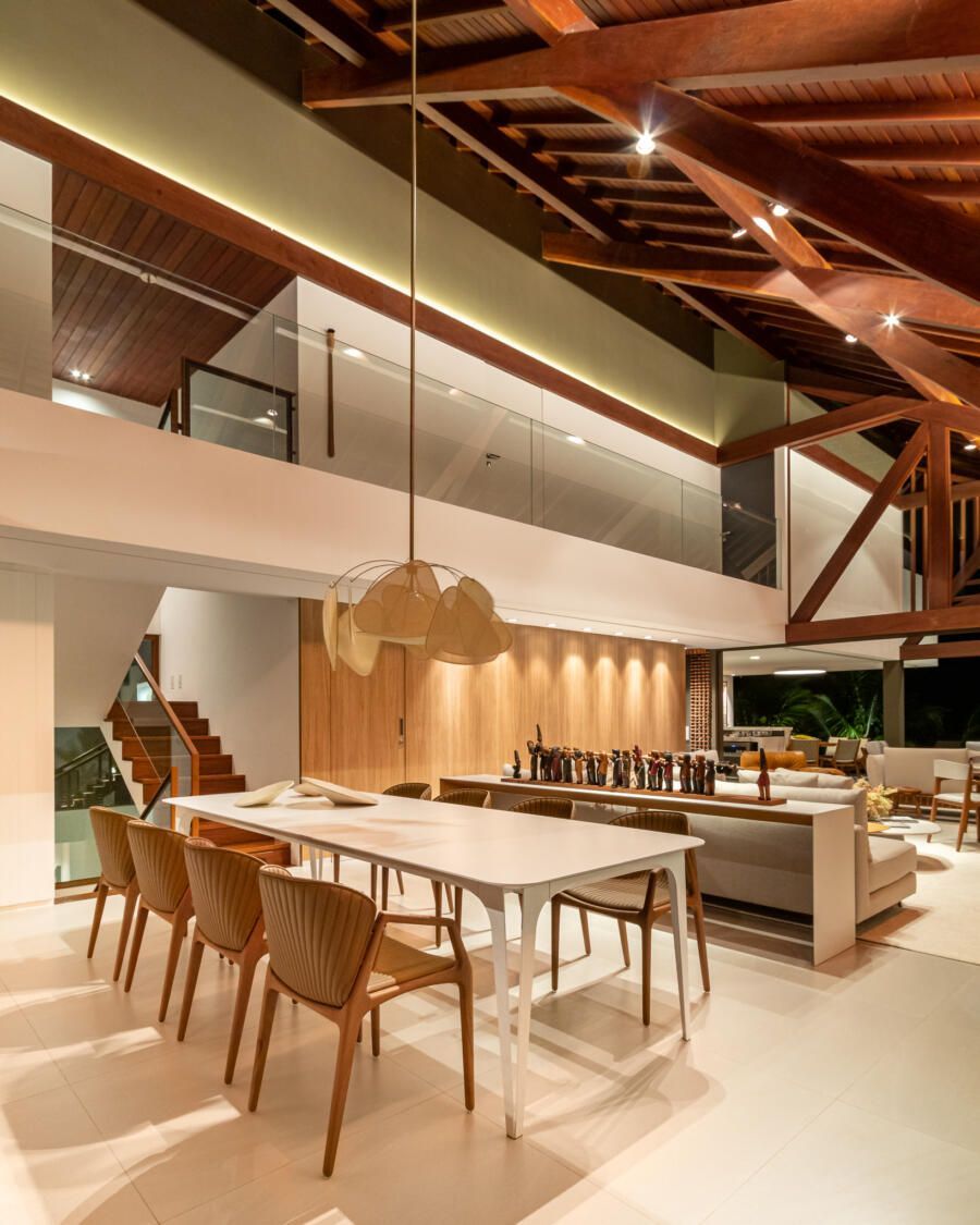 “Buscou-se que os moradores e convidados pudessem perceber a qualidade de acabamentos, mobiliários, iluminação e objetos selecionados para compor a residência, ao mesmo tempo em que seus ambientes se mostrem acolhedores, confortáveis e convidativos aos seus usos diversos.”