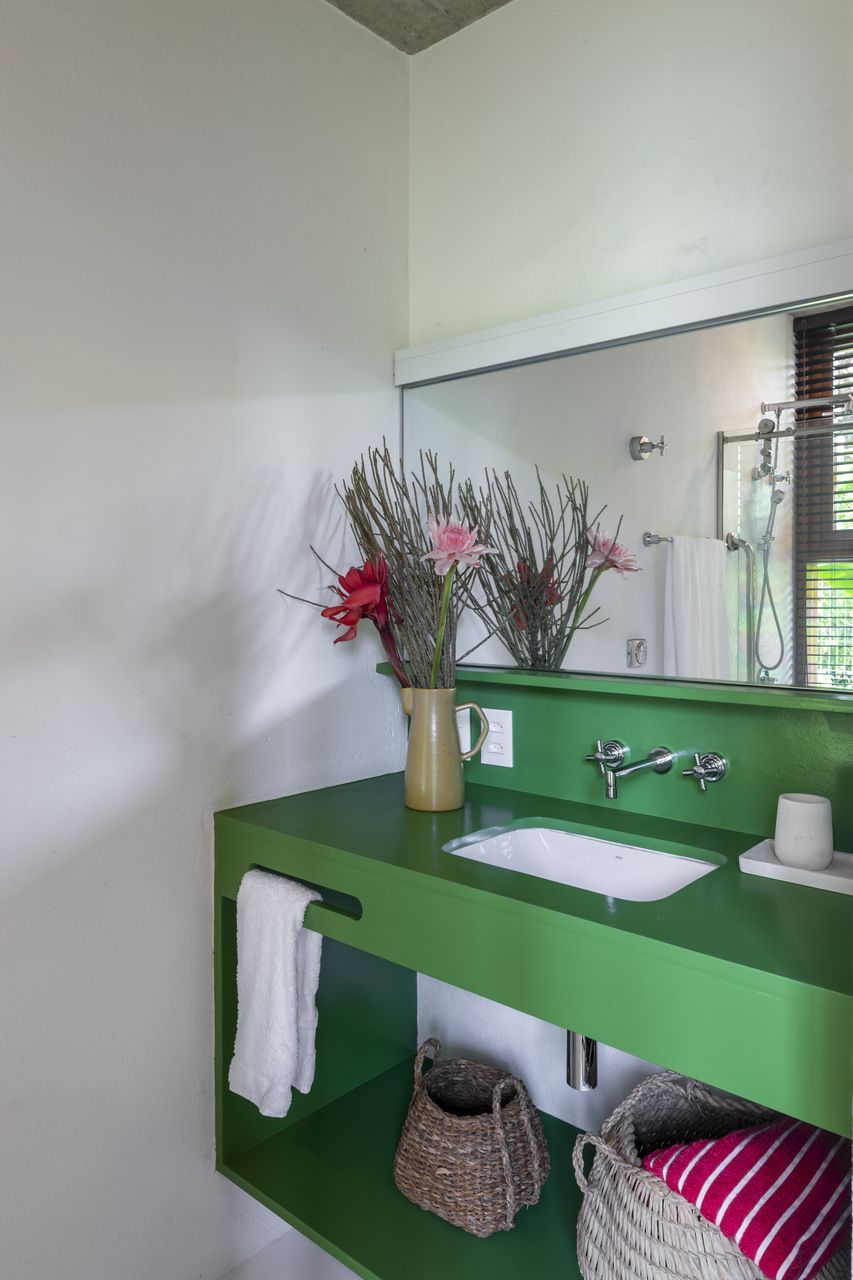 “Queriam uma casa fluída e integrada ao jardim, que recebesse amigos e família. Os móveis, especialmente das áreas comuns, foram escolhidos para trazer flexibilidade e liberdade de uso: para que possam ser movimentados, colocados ora no jardim, ora na varanda. Vivendo a casa dentro e fora, integrados e à vontade.”