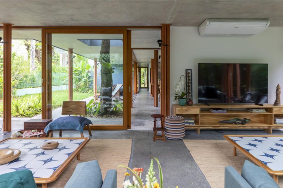 Na Praia da Baleia, em São Paulo, uma família decidiu reconstruir sua relação com o lugar. A antiga casa, comprada já pronta, havia perdido a graça e não traduzia o estilo de vida dos moradores. Em 2020, escolheram começar do zero, confiando ao escritório André Vainer Arquitetos o projeto arquitetônico e ao Terça Arquitetura a criação dos interiores. O resultado é uma casa de praia generosa e integrada ao verde, onde paisagismo e arquitetura se complementam.