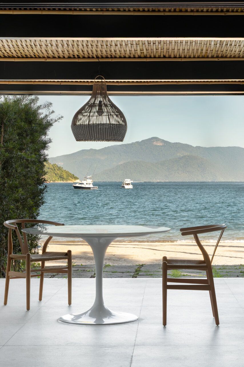 Voltada para as ilhas paradisíacas de Angra dos Reis, esta casa de praia combina decoração minimalista, tons claros e materiais naturais para valorizar a verdadeira protagonista do projeto: a vista privilegiada para o mar, emoldurada pela ampla sala de estar.