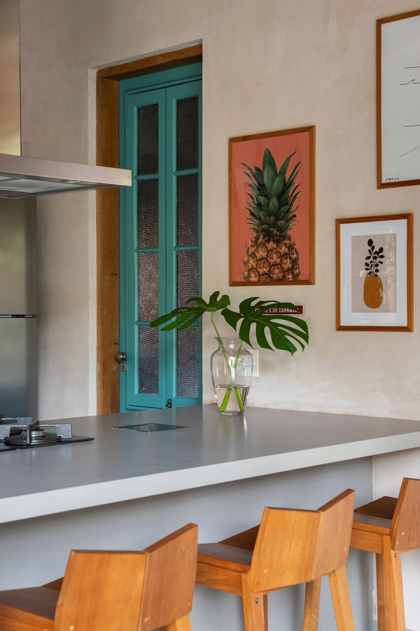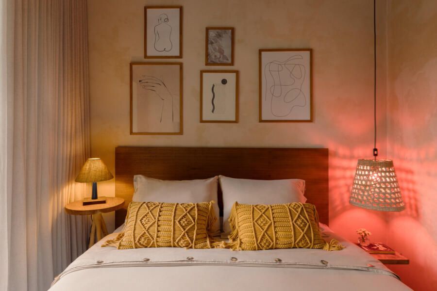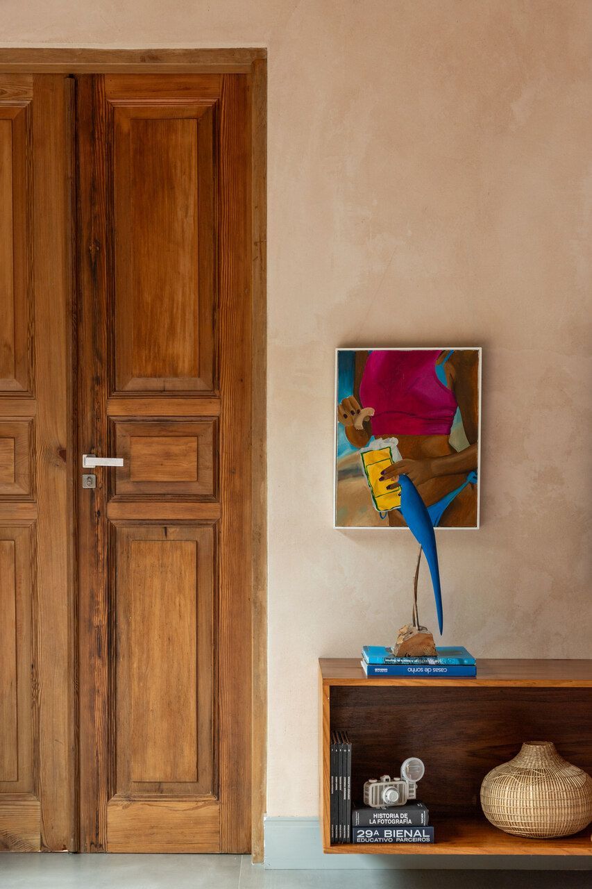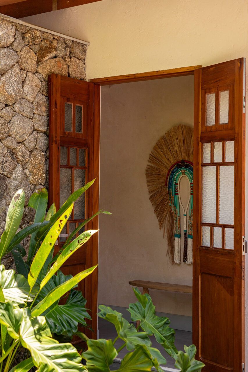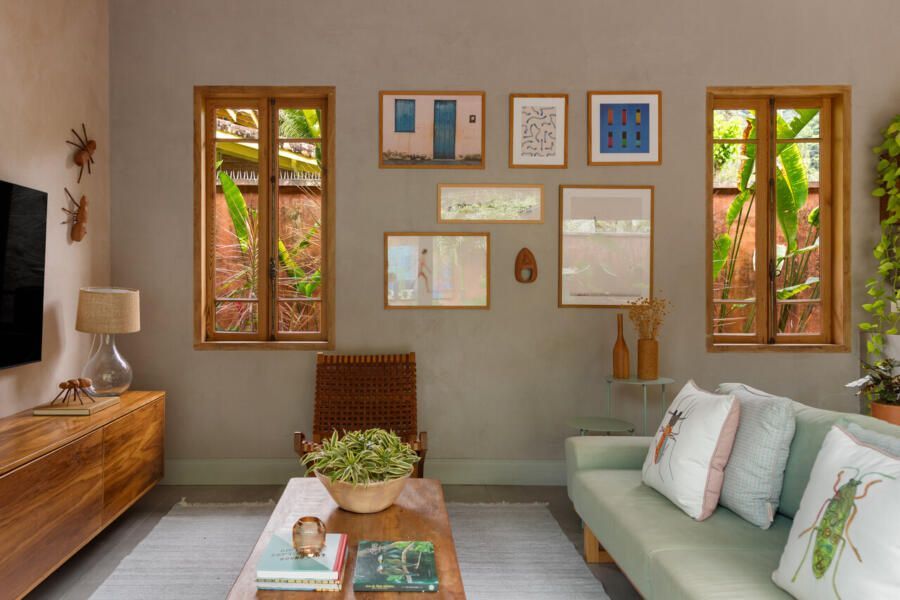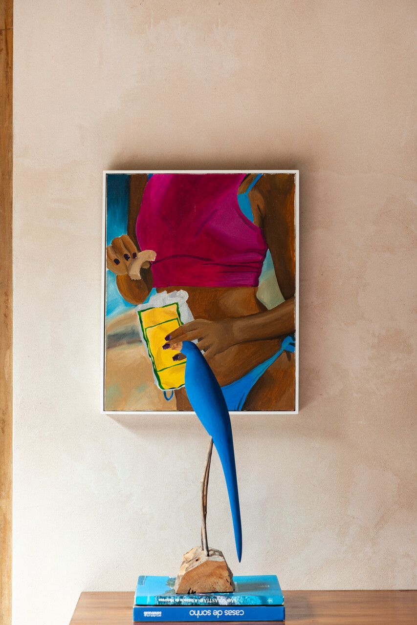 “A residência abriga uma curadoria diversa de artistas contemporâneos, distribuídos entre hall, salas, suítes e área externa, reforçando o caráter quase expositivo da casa. Entre eles, destacam-se obras de Carlito Colhado, Iago Bezerra e Gin Arts, além de peças provenientes das galerias Obrah e Tato.”